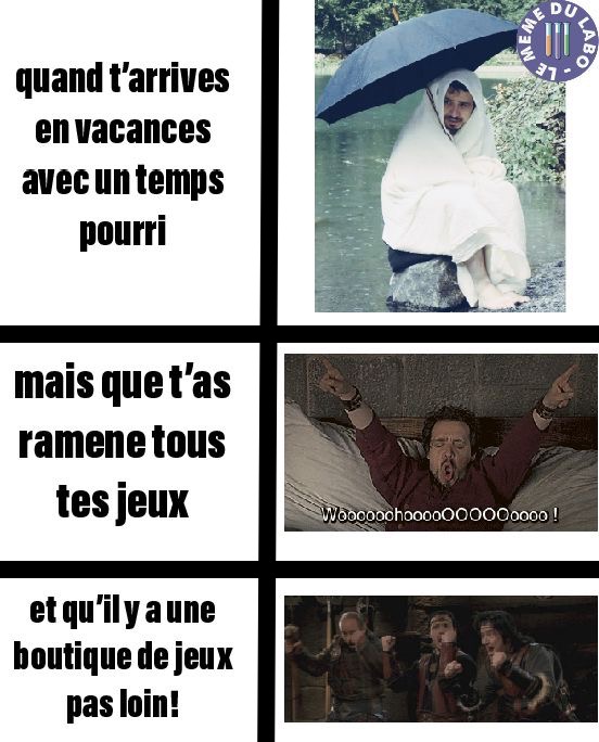 Yâa aussi la version opposĂ©e : tâas prĂ©vu plein de jeux mais il fait beau et tâas tout apportĂ© pour rienâŠ
