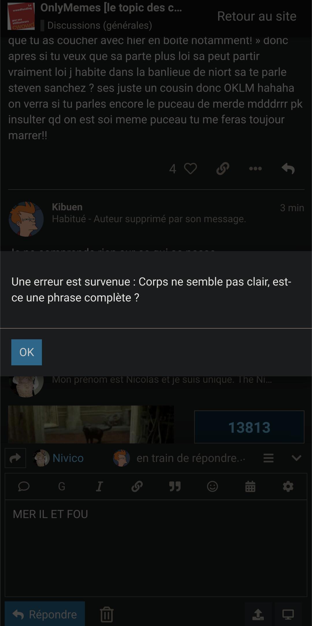 Jâai eu un lĂ©ger doute, mais vu que la rĂ©ponse mâĂ©tait âč adressĂ©e âș sans que tu sois citĂ©âŠ