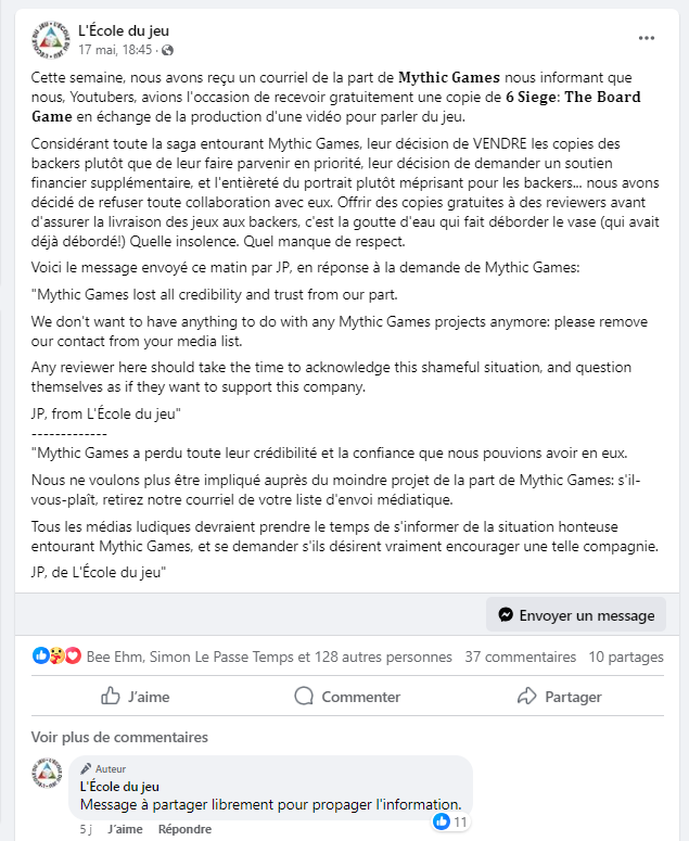 Dâaccord, mais ce nâest pas le mĂȘme rayon dâinfluence que Tom Vasel. Si jamais il avait fait un post Facebook, les plus gros youtubers auraient embrayĂ©s dans la foulĂ©e.