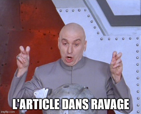 Le seul pour lâinstant que jâai vu câest lâarticle dans le magazine Ravage et dĂ©jà ça mâa fait tiquer âŠ.