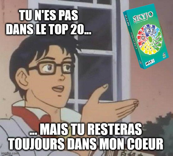 Jâavais pensĂ© Ă la mĂȘme avec Uno mais le Just One est trĂšs bon ![]()