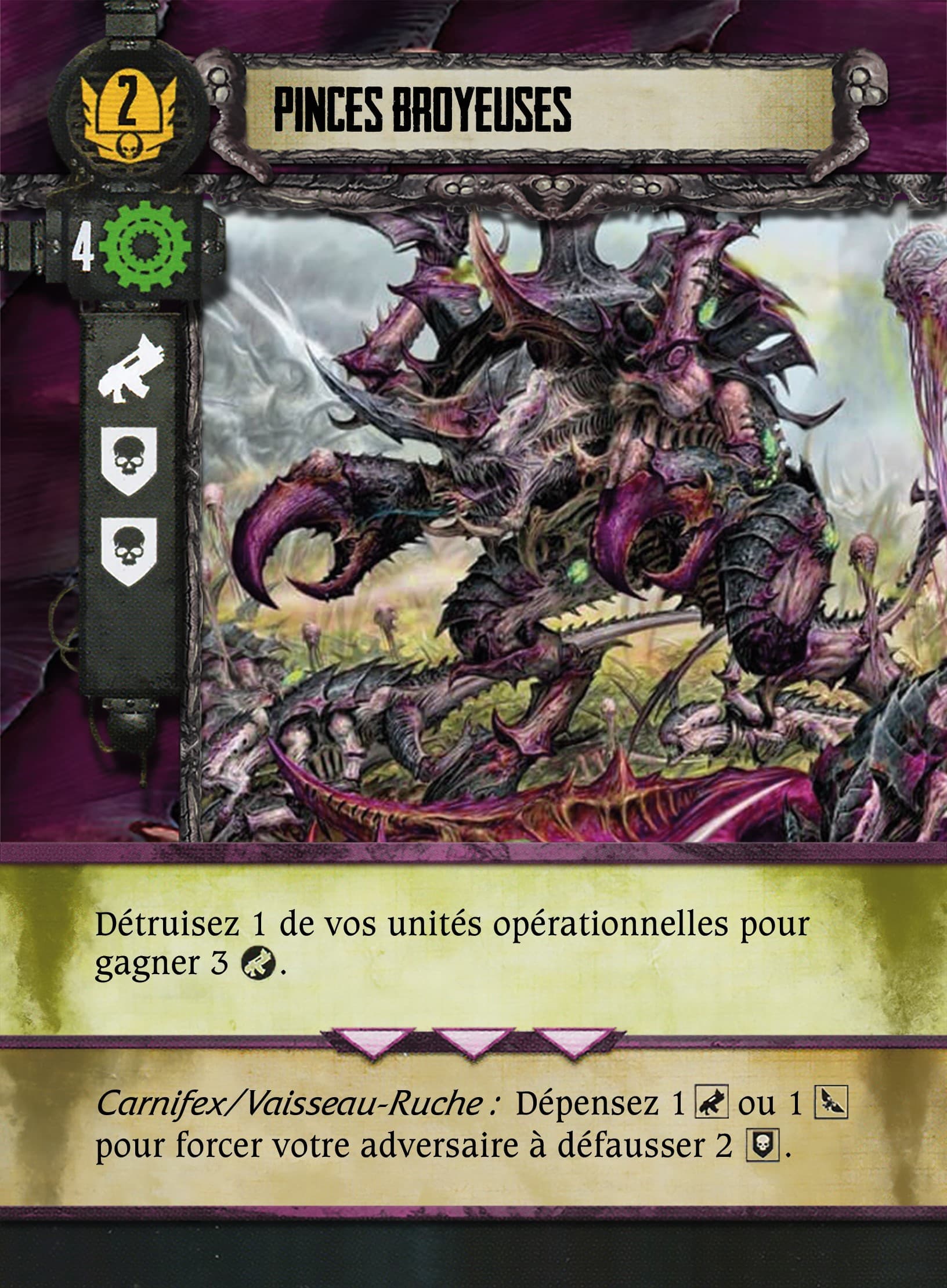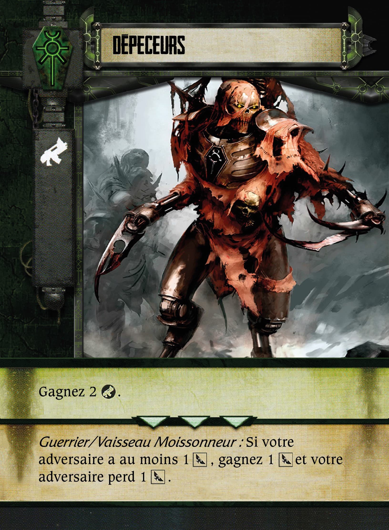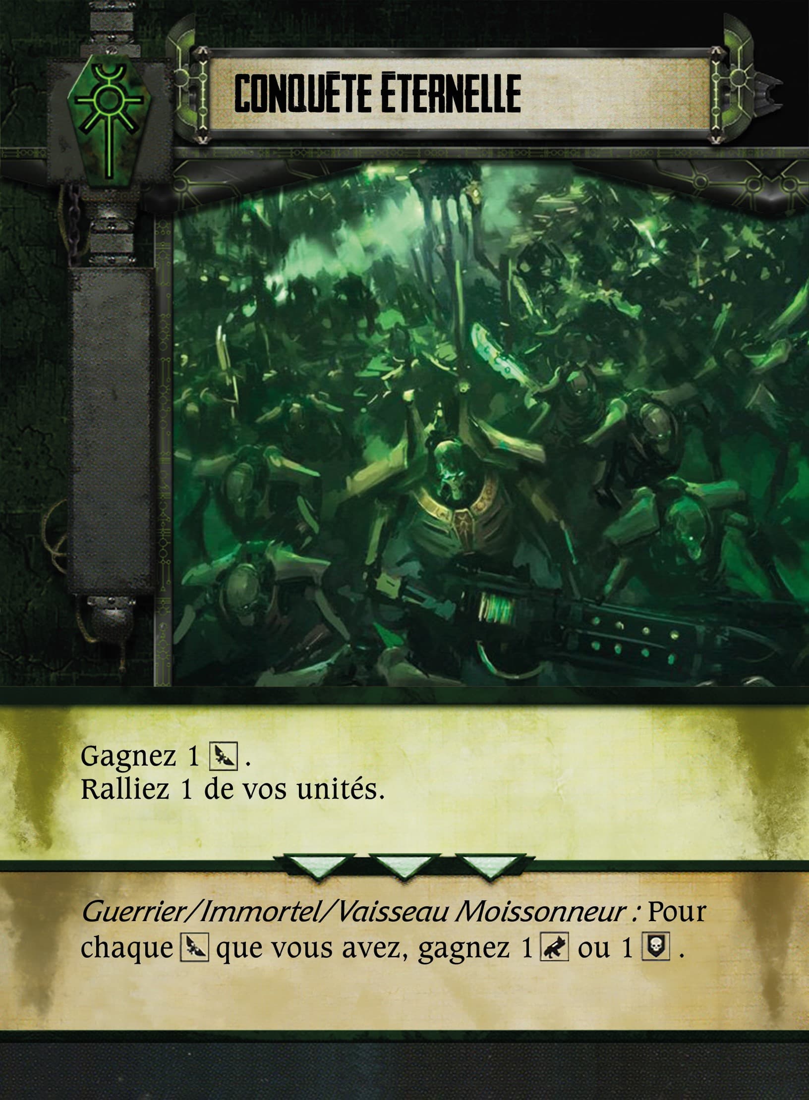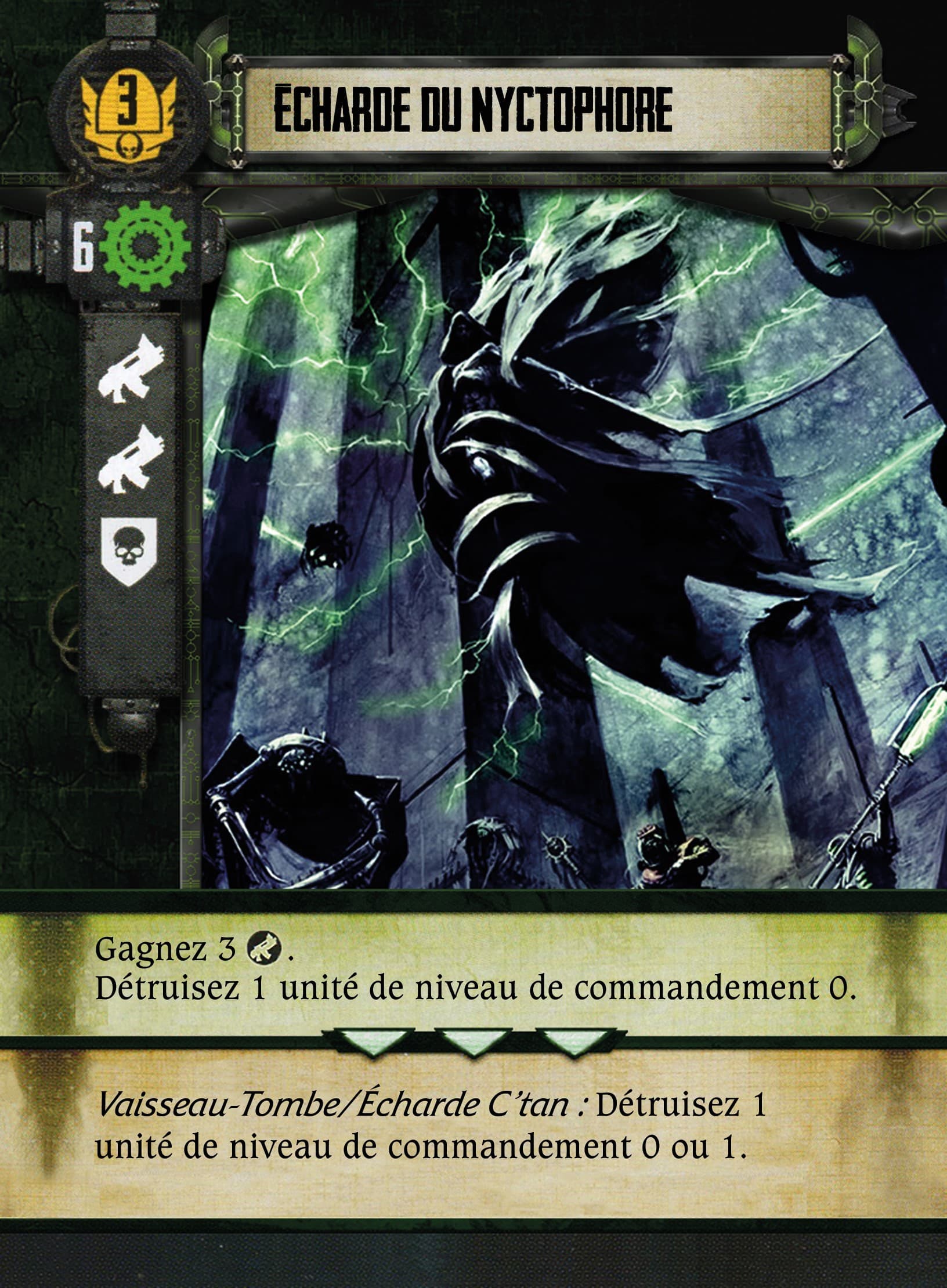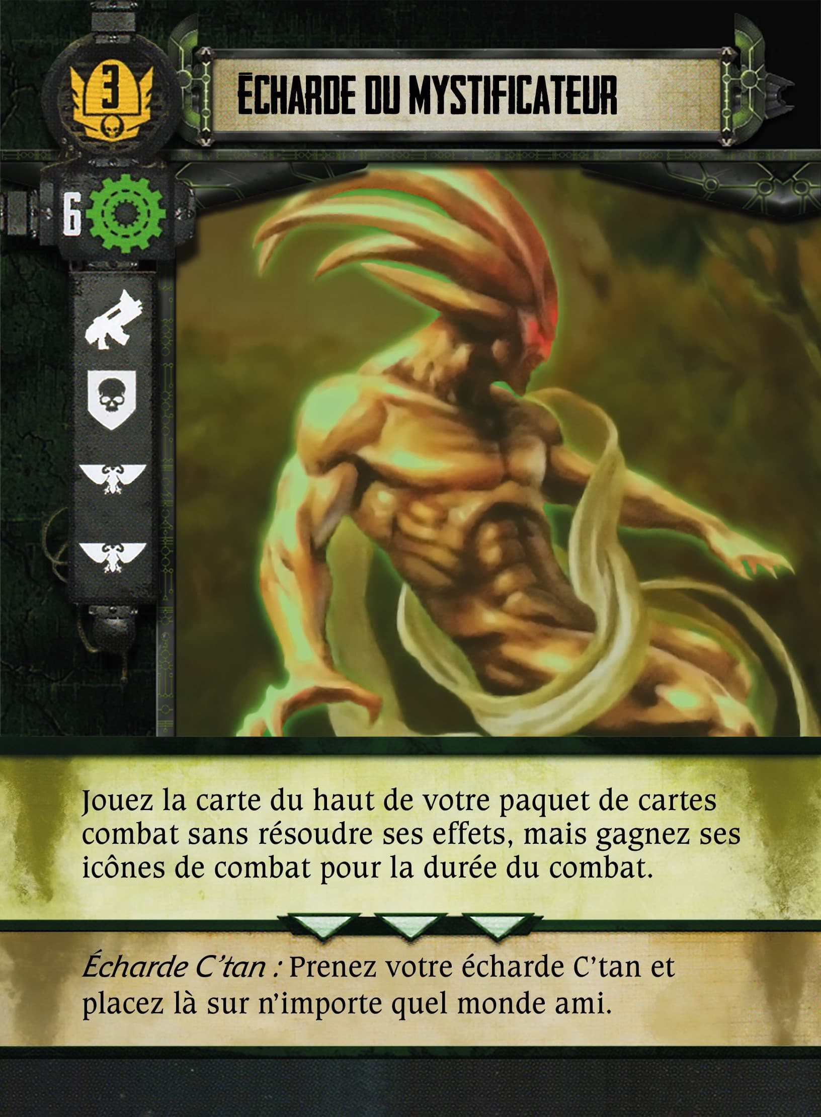 Pour Ca j’ai vu avec necro, il bossait sur une ancienne version des fichers de faction. Sur les nouvelle fiches PL/ANG c’est c’est bien la crypte Tesseract avec echarde C’tan (mais ca reste c’tan sur la carte pour faciliter la vie des ceux qui veulent que les figurines ), et la traduction sera faite en consequence.