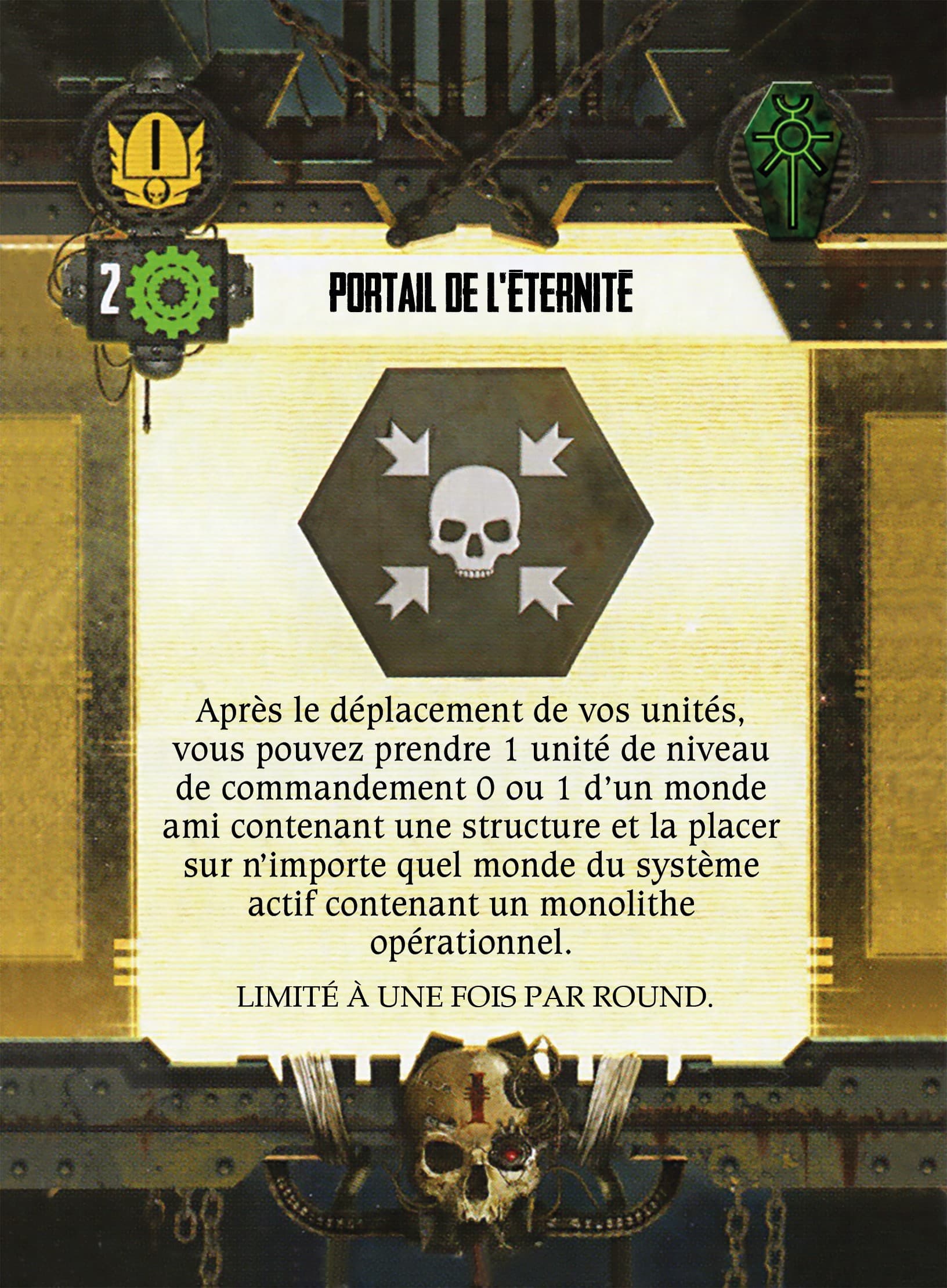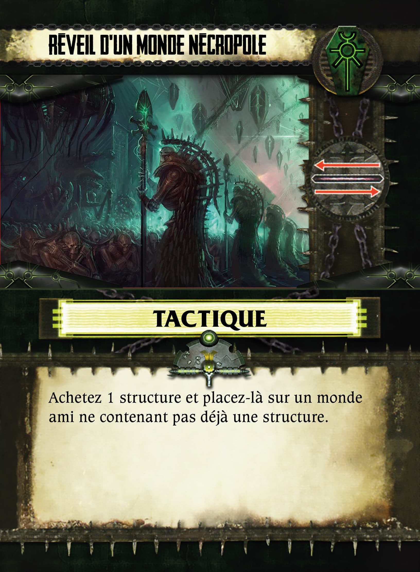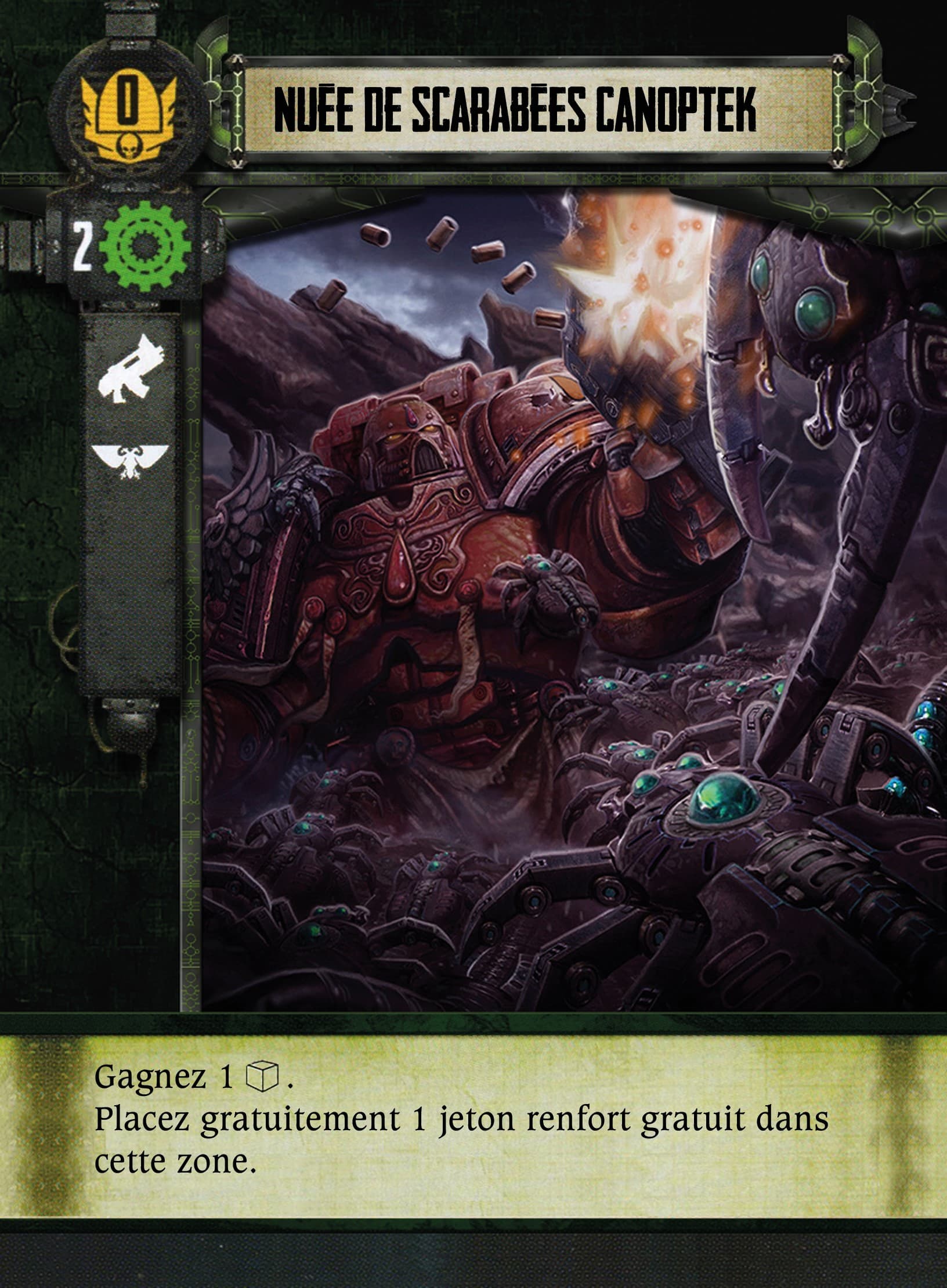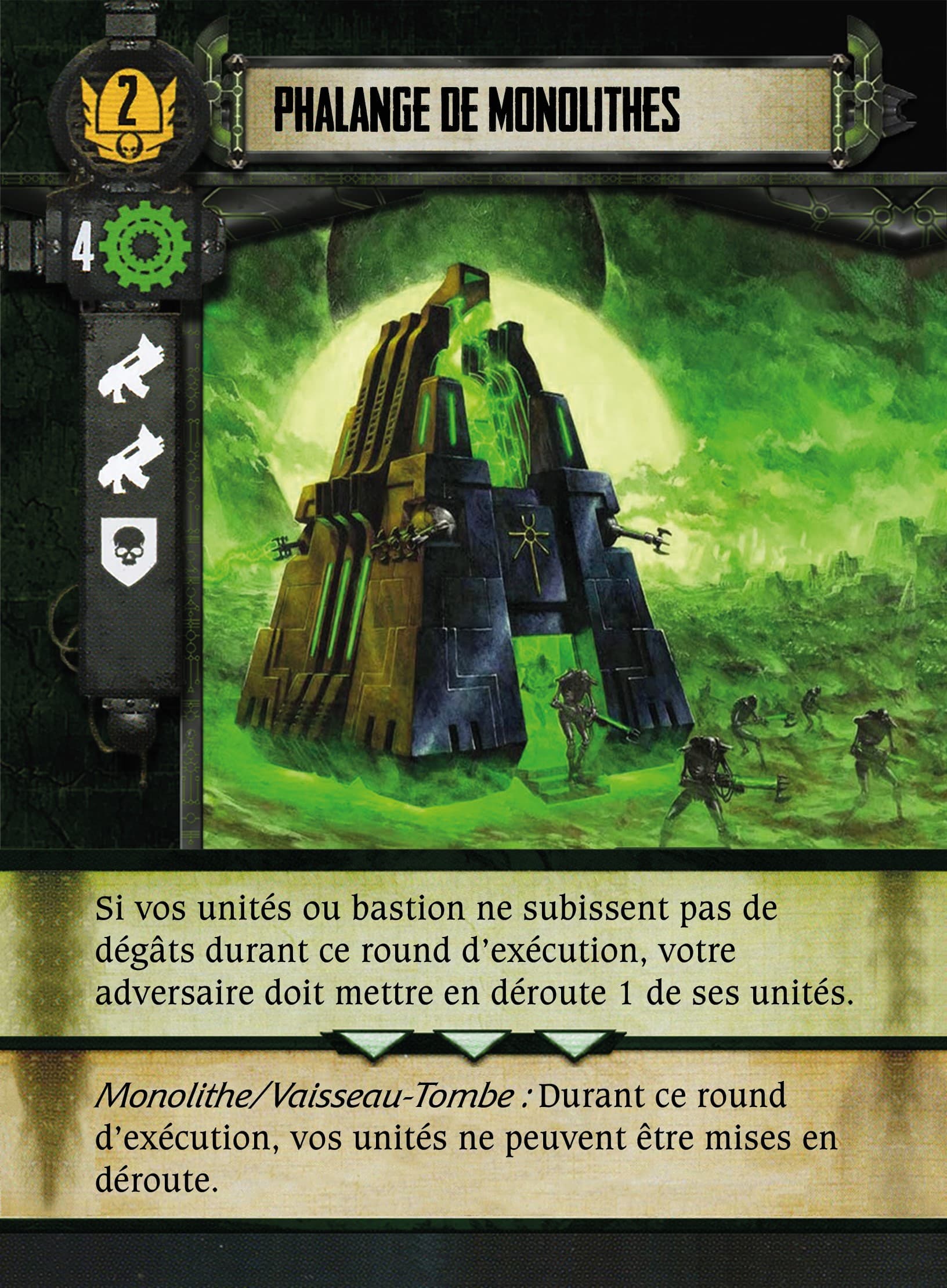 Remarque hors Trad/typo : La crypte Tesseract qui sert de figurine à l’Echarde de C’tan (image de la fiche qui est une Echarde en désaccord avec la figurine), je comprend pour la question d’échelle, mais cela me parait pas adaptée qu’elle puisse se déplacer alors x)