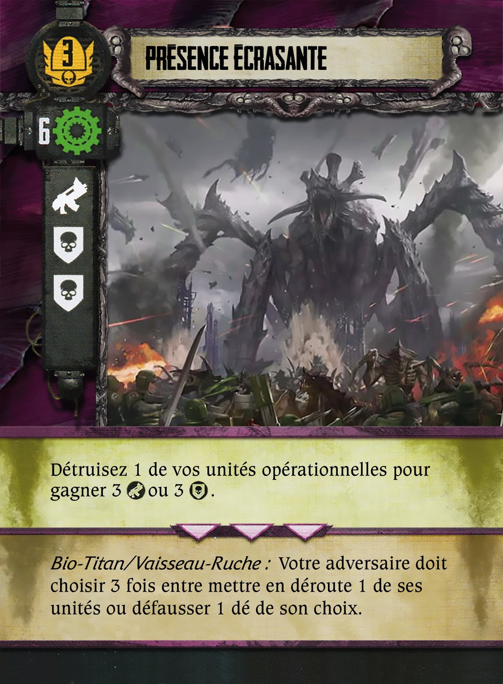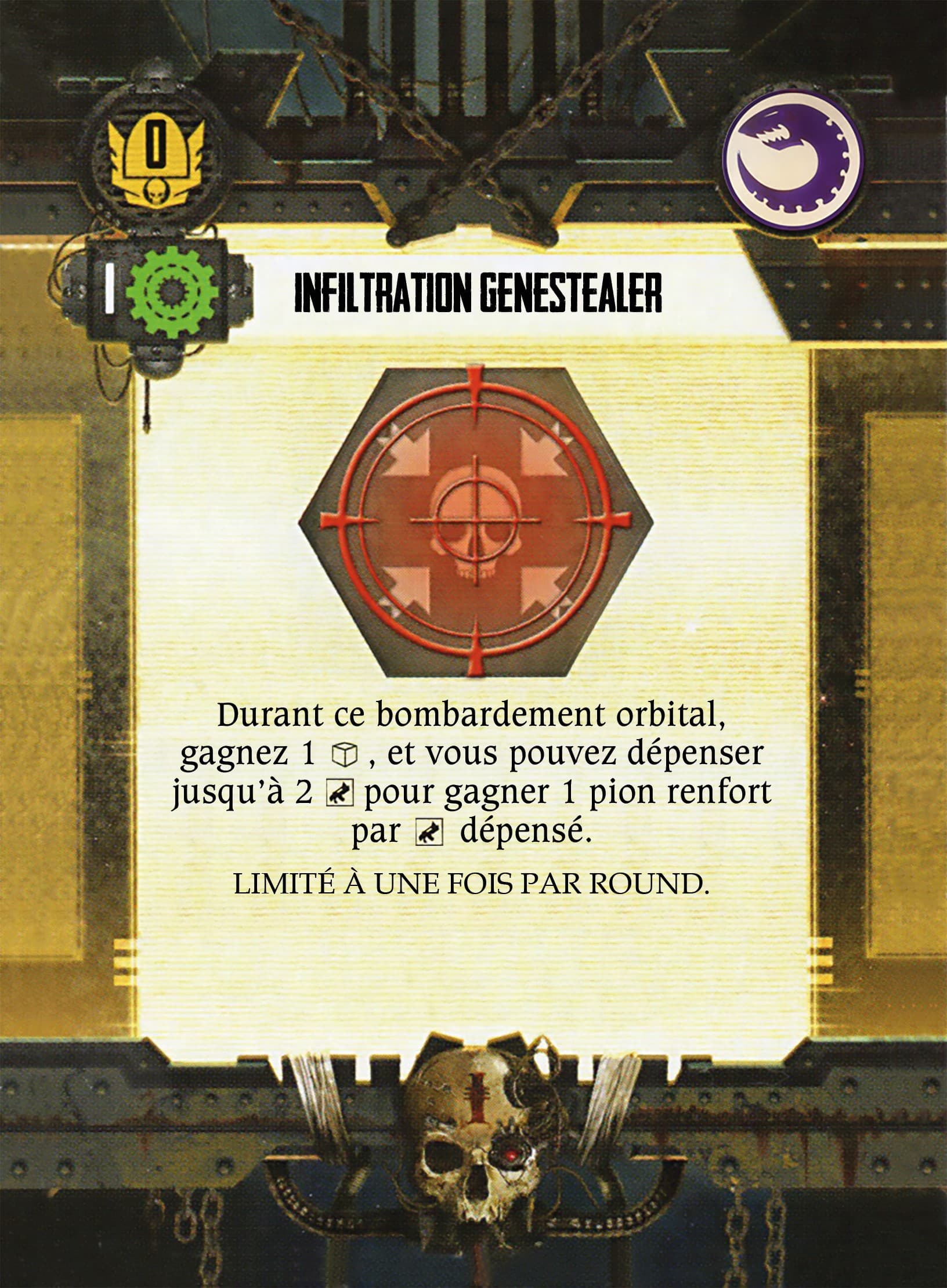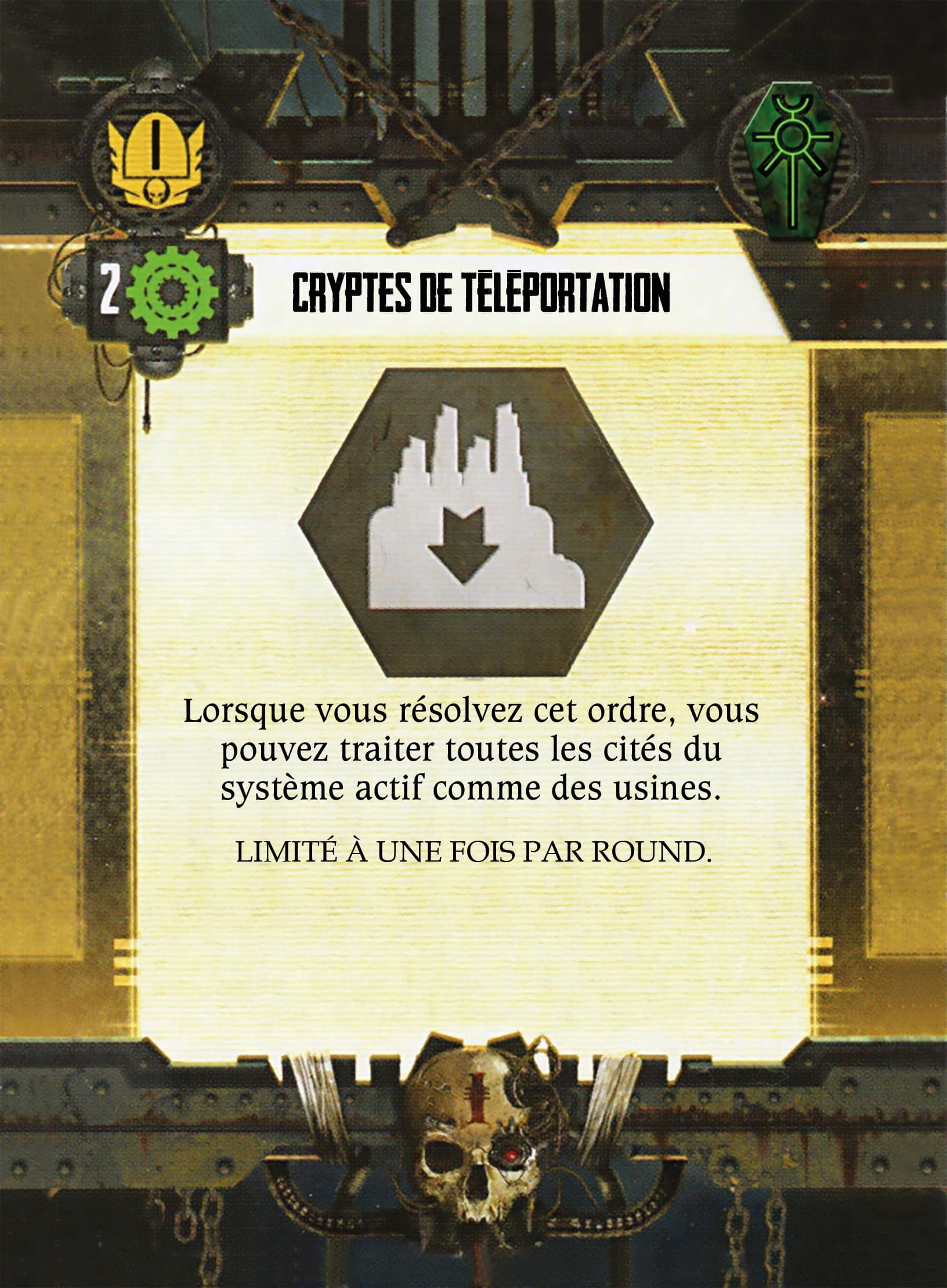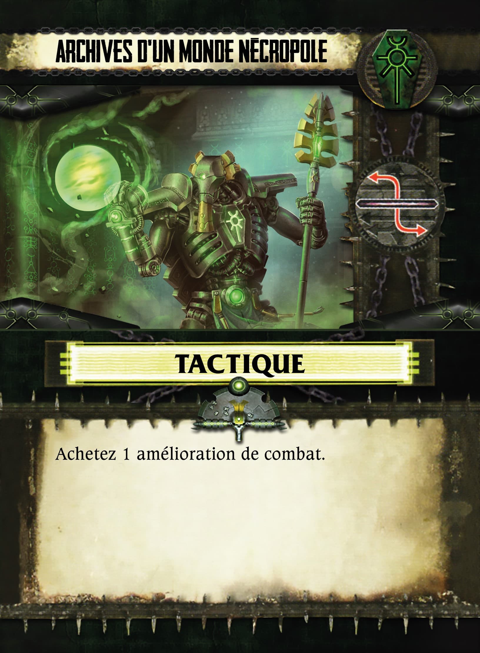 Remarque hors Trad/typo : La crypte Tesseract qui sert de figurine à l’Echarde de C’tan (image de la fiche qui est une Echarde en désaccord avec la figurine), je comprend pour la question d’échelle, mais cela me parait pas adaptée qu’elle puisse se déplacer alors x)