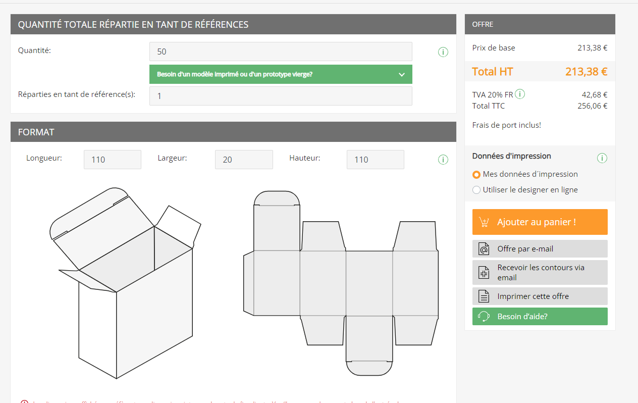 → 5,12€ par boite sur une base de 50 exemplaires.