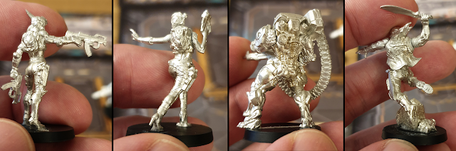 Finalement, je me suis lancé malgré tout (trop séduit par l’univers) et soyons franc; l’approche est moins facile que les grappes plastiques Games Workshop, mais ça se fait quand même sans trop de difficulté. Tu auras besoin d’exactement les mêmes outils; une pince coupante, une petite lime, un scalpel (ou couteau de modélisme), et de la glue. C’est la même méthode que pour une figurine plastique; éliminer les surplus en grattant ou en coupant, peaufiner avec la lime, et coller les parties. Vraiment, vraiment pas sorcier… et les figurines sont super fines et donc vraiment plaisantes à peindre.