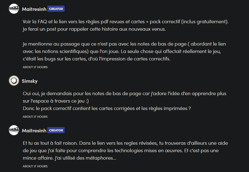 Le mieux c’est de lire le post de départ et la réponse de Maitre Sinh sur ce fil : Review de la VF de chez 500 nuances de geek | High Frontier 4 All