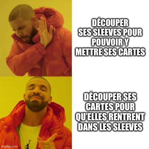 Car oui, le temps c’est de l’argent. Si ça te coûte 30€ de plus pour les sleeves à bonne dimension mais que tu vas y passer 5h de découpe si tu prends les trop longues, ça revient à dire que t’es payé 6€ de l’heure de faire le boulot de découpe.