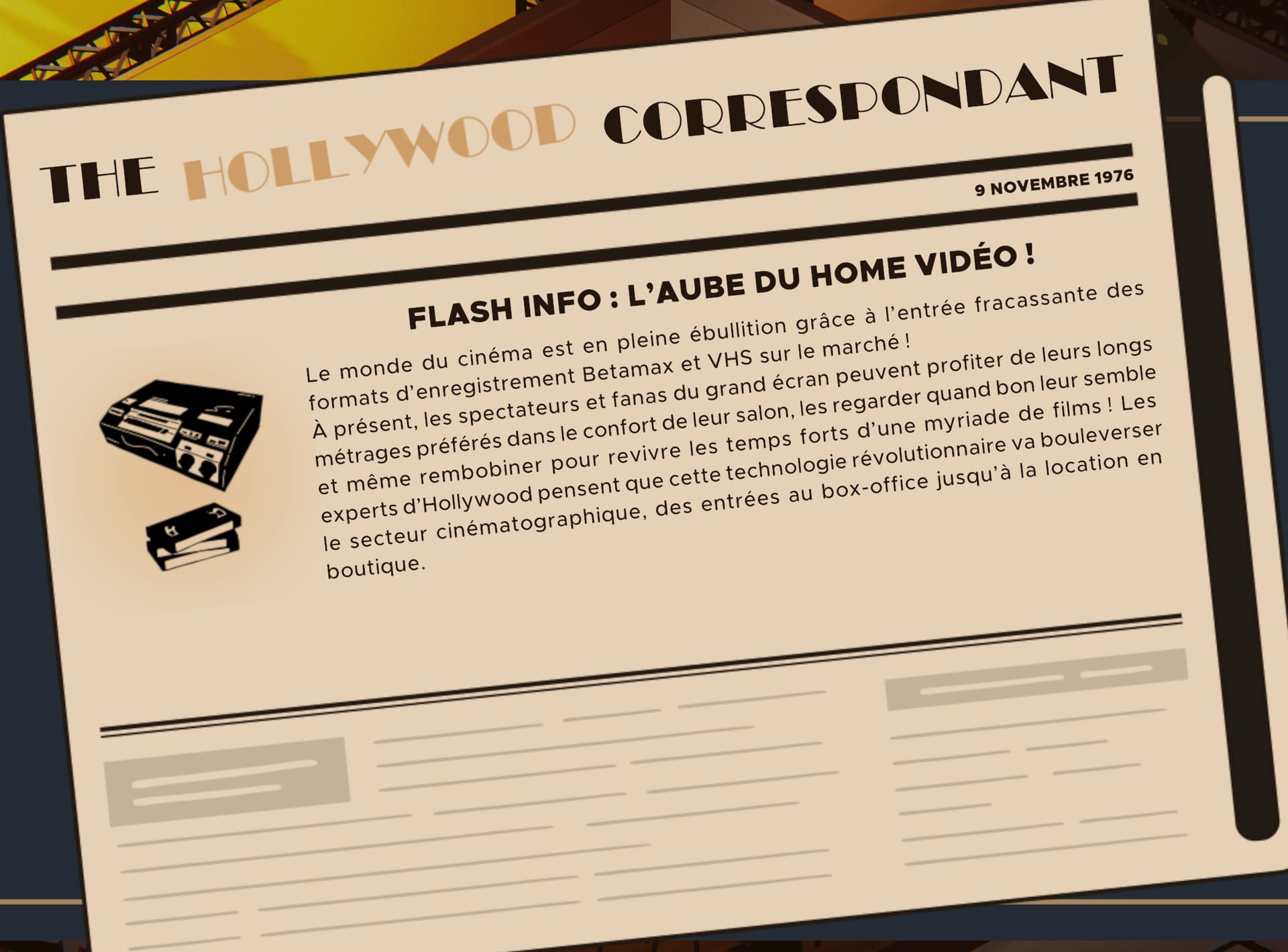 Ici, le début de la VHS ! Et on pourra alors gérer ce côté distribution, allouer un nouveau service à notre studio, pour gérer tout ça. Il y aura aussi éventuellement quelques problèmes sur le tournage, et des choix à faire pour le studio (généralement choisir entre 2 choix).
