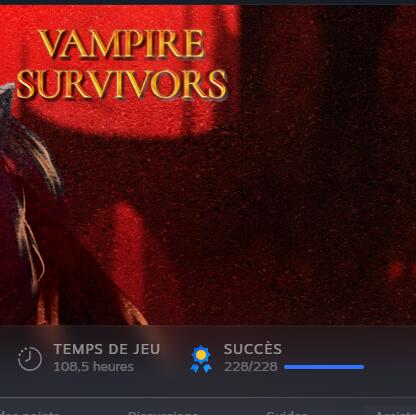 A propos de Vampire Survivors, j’ai terminé récemment les quelques pas nombreux achievements.
