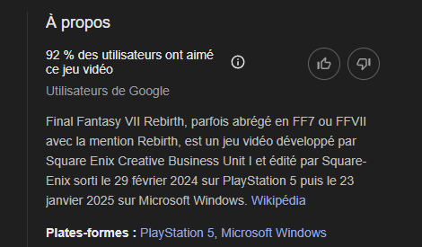 Contre argument : ff16 c’est chiant. Ya pas ce mix entre moment dramatique et moment plus legers/ marrant que la plupart des final fantasy ont ( et que Clair Obscur reussi magistralement aussi ). La c’est gloomy chiant tout le temps. Le scenario principal veut se la jouer game of thrones/ dark fantasy serious business sans y arriver avec des non twist navrants. Les quetes secondaires sont le pire de ce qui se fait dans le milieu a base de va parler aux 3 vieux qui font mystérieux et ramene moi 5 peaux de loups
