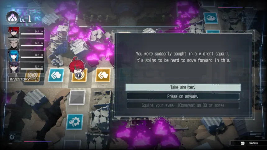 Comme dans le susnommé, les autres activités vont de la simple déduction (en ayant écouté les dialogues) pour offrir les bonnes choses aux bonnes personnes, ou trouver les bons arguments, à tout un jeu d’exploration avec des choix risqués à prendre et une gestion des ressources, mâtiné d’un « stop ou encore » assez efficace.