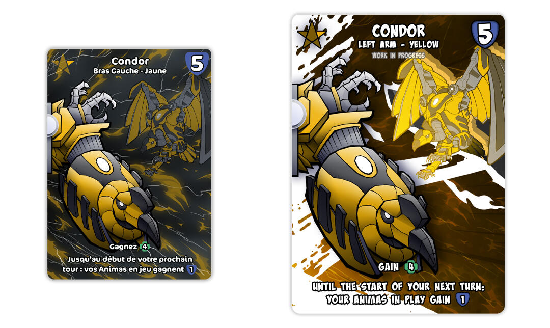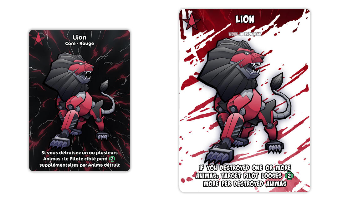 Jusqu’ici, vous aviez aperçu le prototype, une version de travail pensée pour les premières démos. Et grâce aux parties test, notre équipe graphique a retravaillé les cartes pour leur offrir plus d’impact et un style visuel encore plus affirmé.