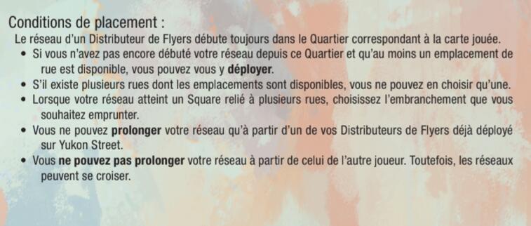 Je viens de terminer la lecture des règles et j’ai une question concernant l’action distribuer des flyers :