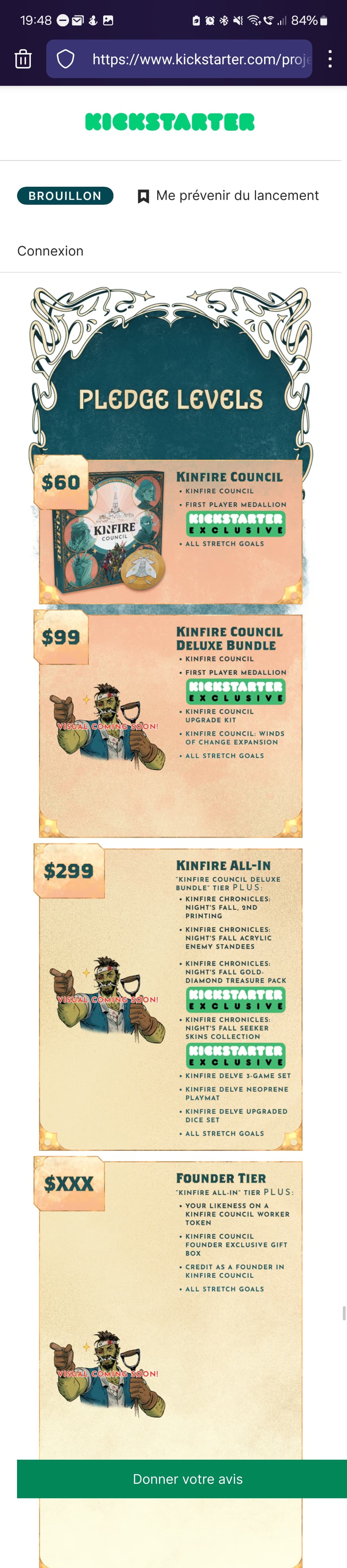 Le pledge de base sera à 60$ pour Kinfire Council et il y aura une extension solo/coop en add-on.