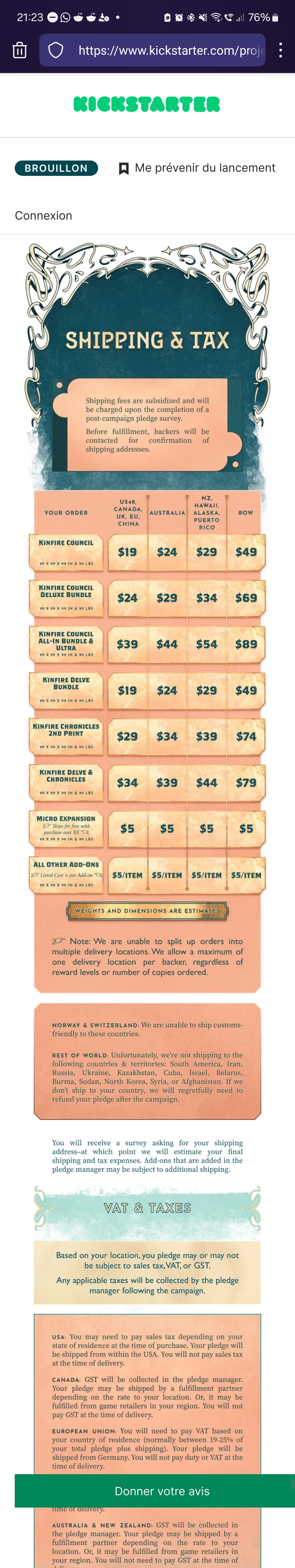 Pour le reprint de kinfire chronicle ça va faire 200€ fdp et tva in… Ouch!