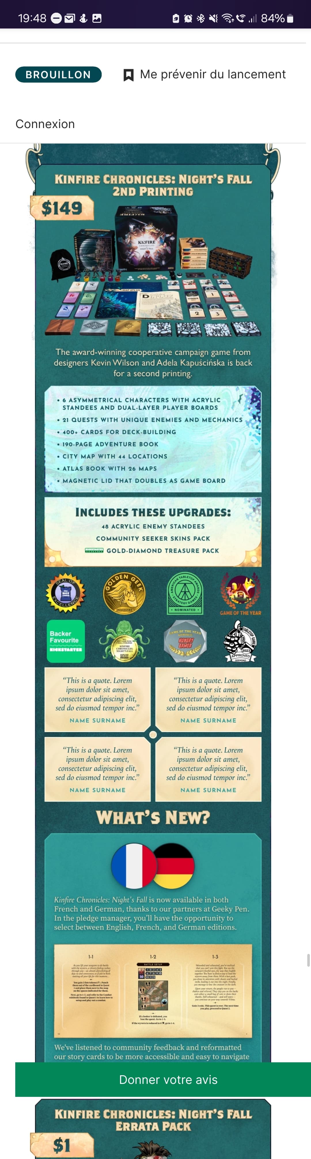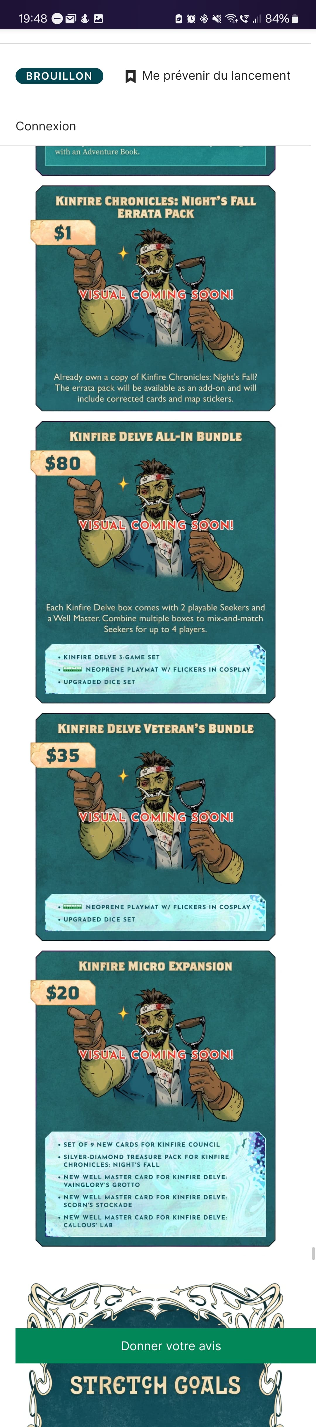 Cependant Kinfire Delves (3 boites) et Kinfire Chronicles seront quant-à eux disponible en français