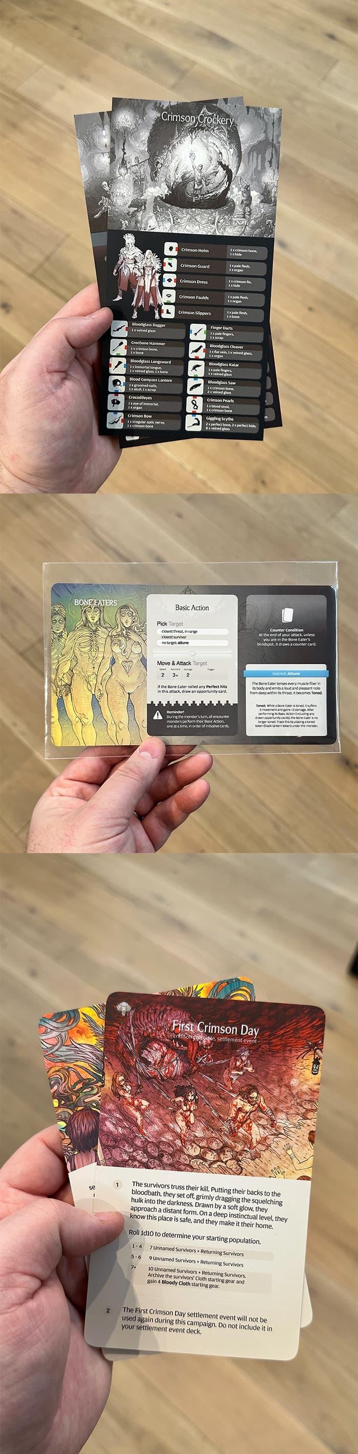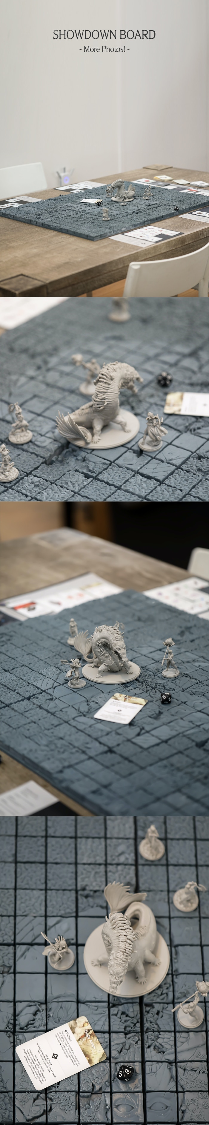 Many exciting things have happend since I last stopped by to make an update. We got some digital proofs, holding the Crimsom Crocidle AI deck in our hands made us weep with joy! And the 3D Print team put together our semi-final prototype of the Hard Plastic Showdown Board. The direction of making it tile based, as opposed to large slabs was a bit nerve wracking, but the final result is stunning. The tactile feel is excellent and I’ve already got a small laundry list of final adjustments before we move this beast of 352 tiles into tooling!
