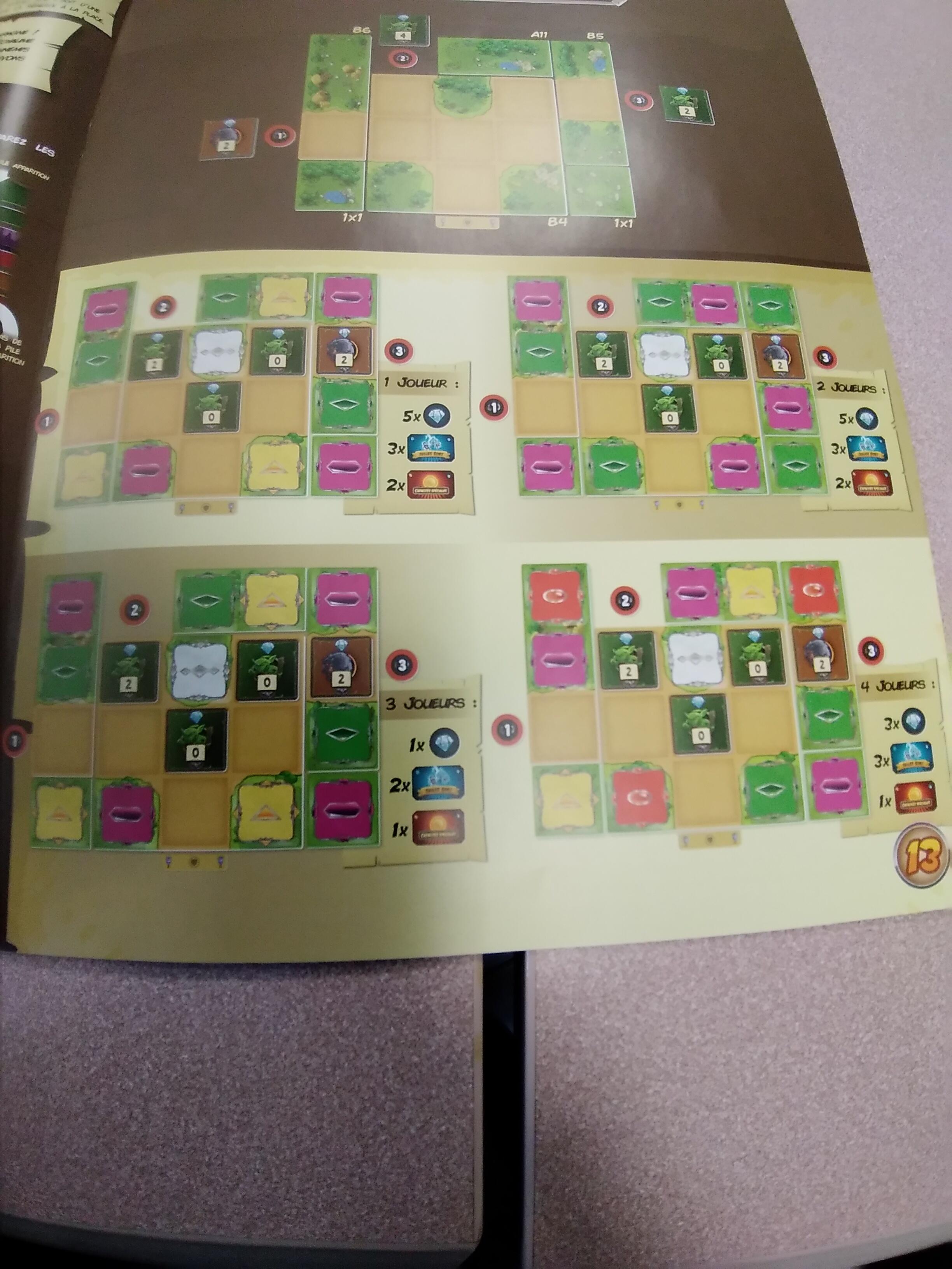 Coucou il n y a pas d erreur sur la mise en place du scénario 5 pluie de flèches ? Nous allons jouer à 3 et je vois que ça passe de 5 diamants a 1 puis 3 …