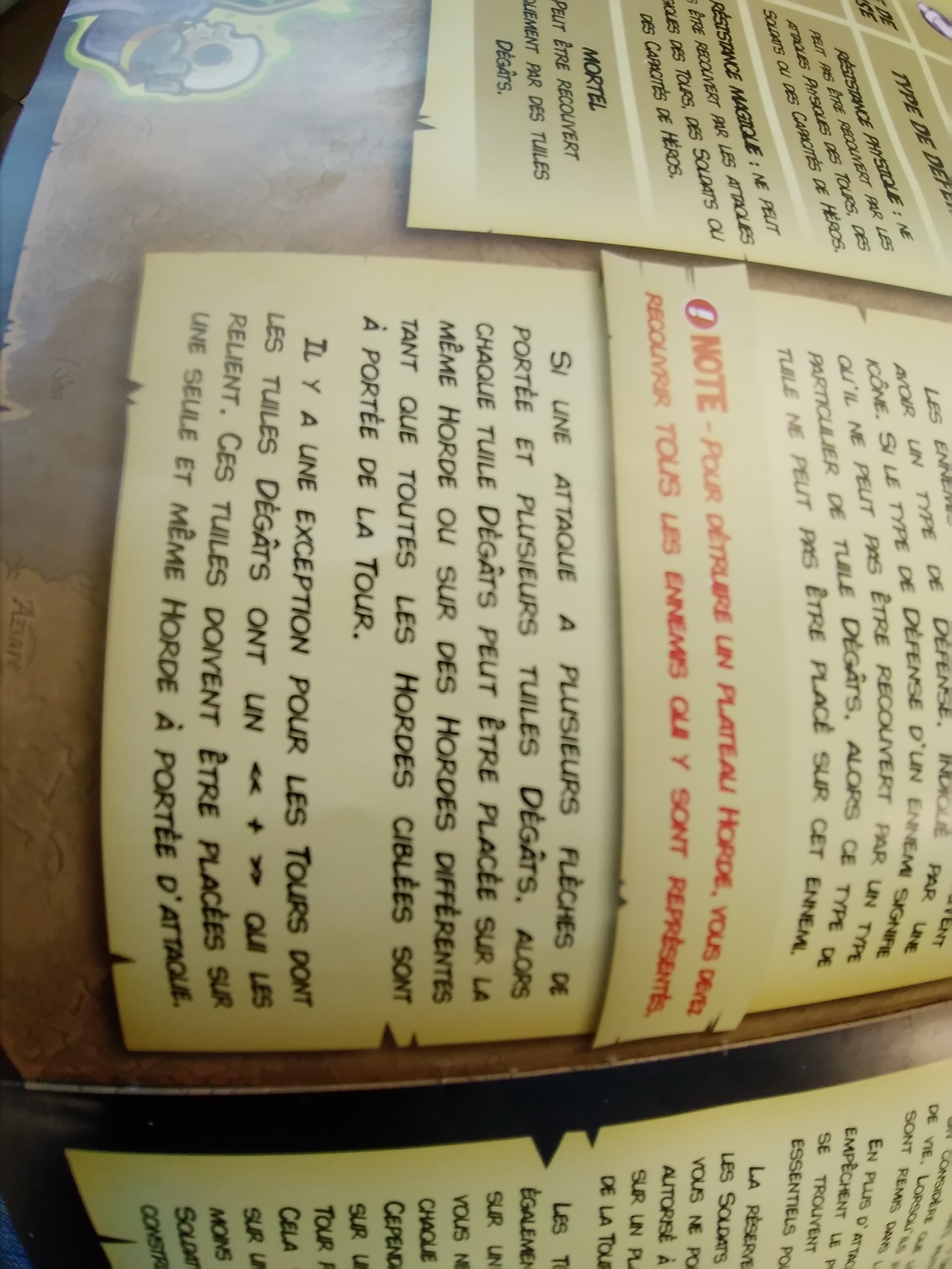 Par contre, pour ton tireur d’élite tu peux répartir les 3 tuiles dégât 1x1 comme bon te semble (enfin selon les flèches hein! ) car il n’y a pas de + entre les 3 tuiles. Donc dans ton exemple tu pourrais mettre une tuile 1x1 sur chacune des hordes devant la tour et la 3ème sur le boss.