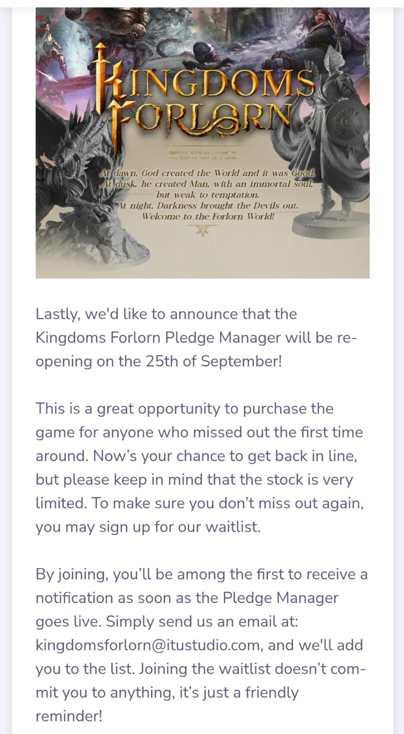 Il réouvre le 25 septembre, pour vendre leurs « surplus » de production (et comme d’hab pour la réimpression qui aura lieu pour la sortie des extensions, que je ne vois pas sortir avant 1 ou deux ans)