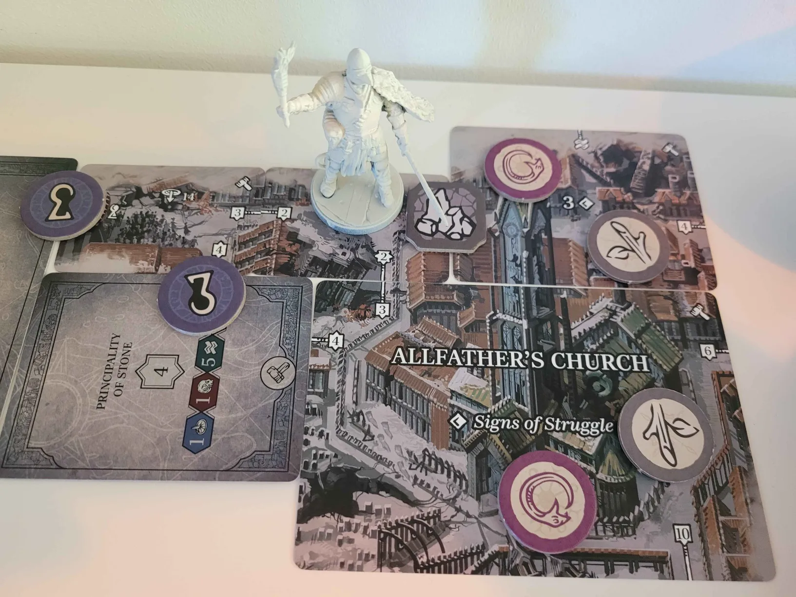 La Principality of Stone est très sujette à ce genre de choses, avec ses Panzergates. Il faut récupérer des clefs, et engager le mercenaire local, qui permet justement d’ignorer un Panzergate (mais pas de le retirer).