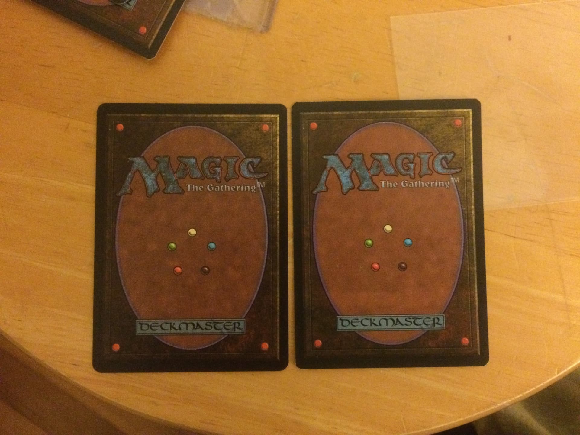 Comme vous le voyez, même au sein d’une même édition (donc même imprimeur mais peut être deux tirages différents sur la même édition, je ne sais pas), il y’a des changements, parfois voyants, parfois non. Et eux, ils ont du travailler pas mal de temps avec leur imprimeur pour justement rendre l’impression plus consistante sur un seul card back qu’ils ne changent jamais durant 20 ans.