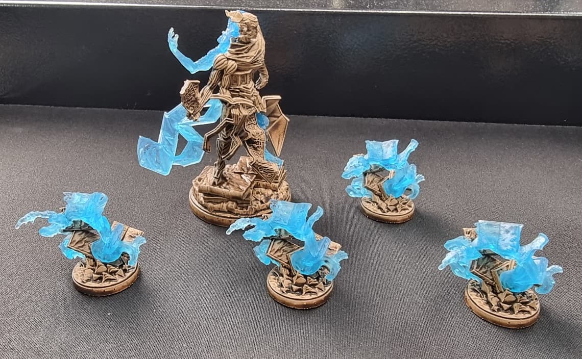 Sur cette image (prise sur la table disponible sur le stand), on voit bien le token du « groupe » (en haut) qui se balade en ville et va donc interagir avec les lieux : ça peut être une ville (comme ici) où un paysage ( comme ceux de l’update 4 : https://gamefound.com/en/projects/awaken-realms/lands-of-evershade/updates/4 )