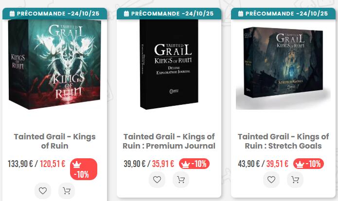 Pour Arydia, il y aura soi disant un reprint… J’attends (et oui j’ai vu passer la vente mais… ça va vite ! :D). J’ai d’autres exemples, Isofarian Guard, j’ai fini par pledger la version qui sort en mars, ne trouvant rien. Une extension pour tainted grail (échos du passé), ben introuvable…