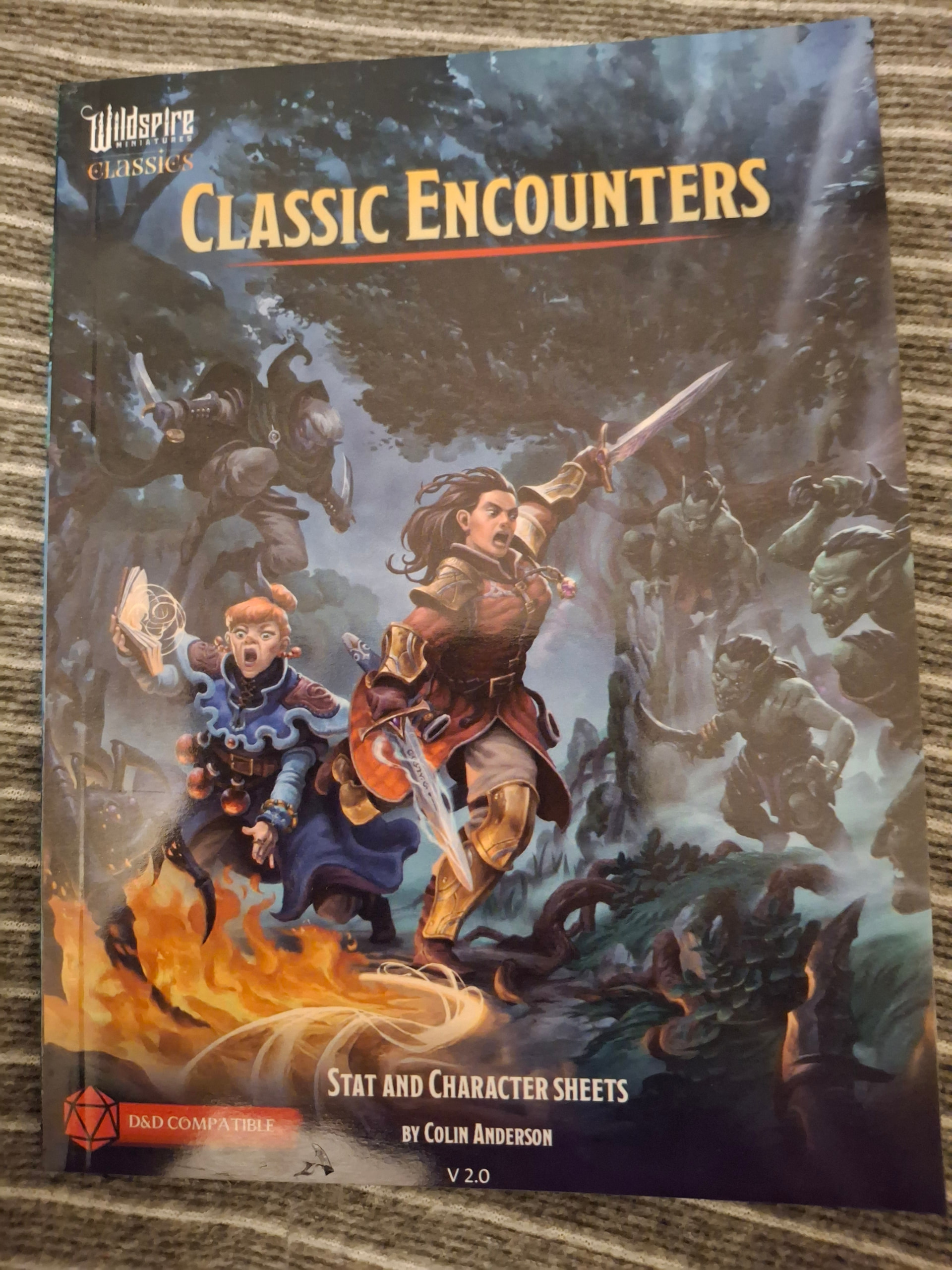 Il y a un tout petit livret (souple) avec quelques stats D&D 5E pour certaines figurines, et un catalogue de leurs publications. En V.O. Cosmétique mais bon, mieux que rien.