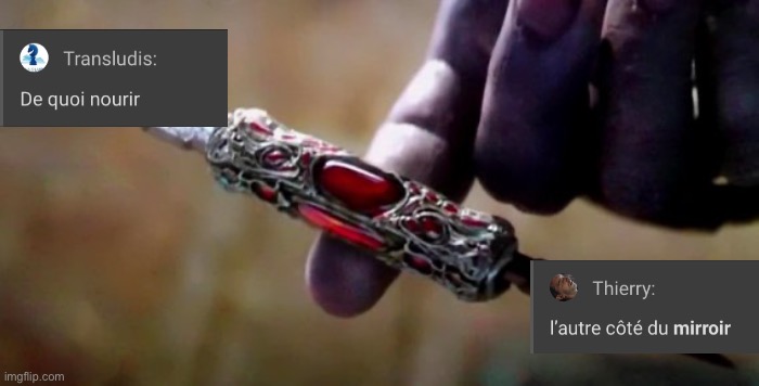 Idem. Autant on se doit d’être des « obsédés textuels » (copyright Richard Herlin) dans le cadre de notre travail, autant ça n’a pas sa place ailleurs, amha (bon, sauf quand certains ont l’outrecuidance de parler de chocolatine au lieu de pain au chocolat, bien sûr, mais là, c’est plus la défense du bon goût qu’autre chose). ![]()