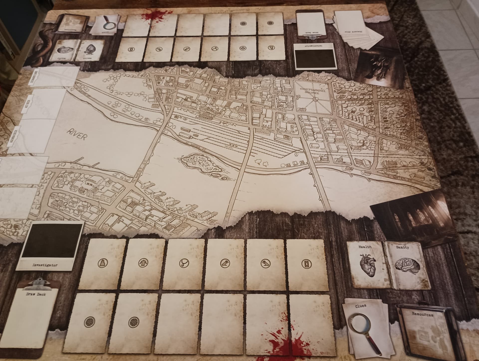 Boîte de base + campagne de Dunwich complète+ campagne Carcosa complète + campagne la civilisation oubliée complète + Scénario "les gardiens de l’abîme + sleeves premium pour les cartes joueurs + tapis néoprène double face (90cmx90cm, sera envoyé plié) + 4 livrets imprimés (voir photos).