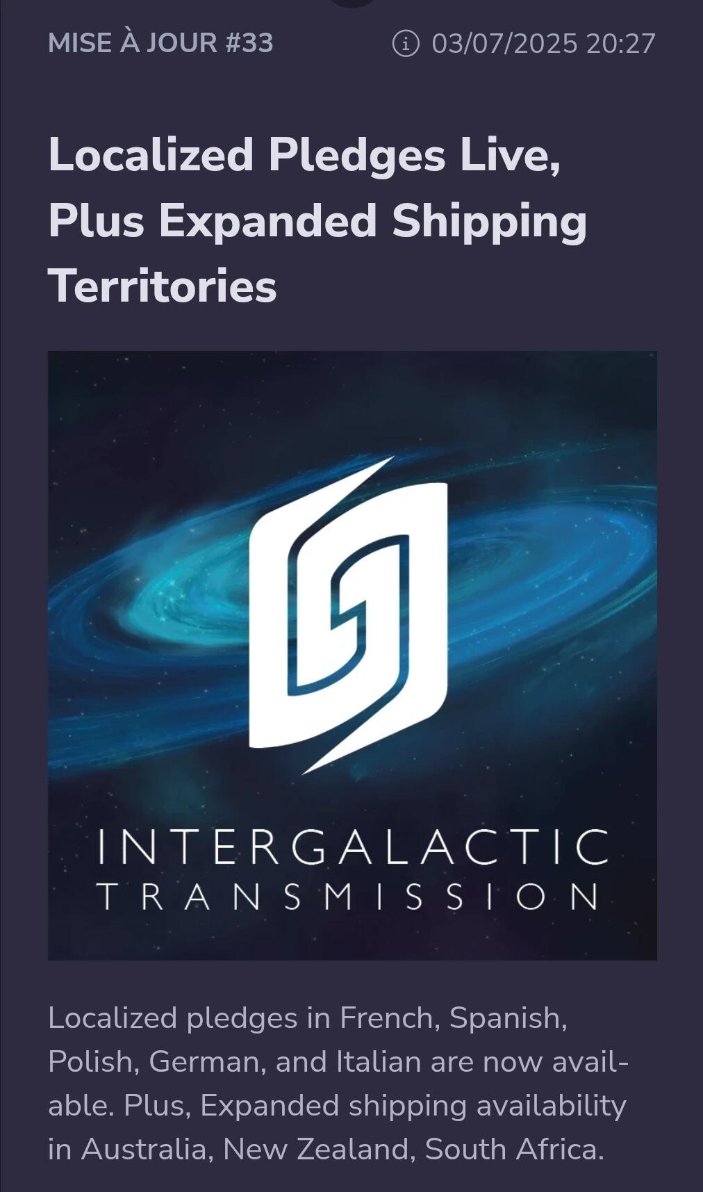 Je viens de voir que CrowdFinder propose une offre intéressante pour le pledge standard et donc en V.O.