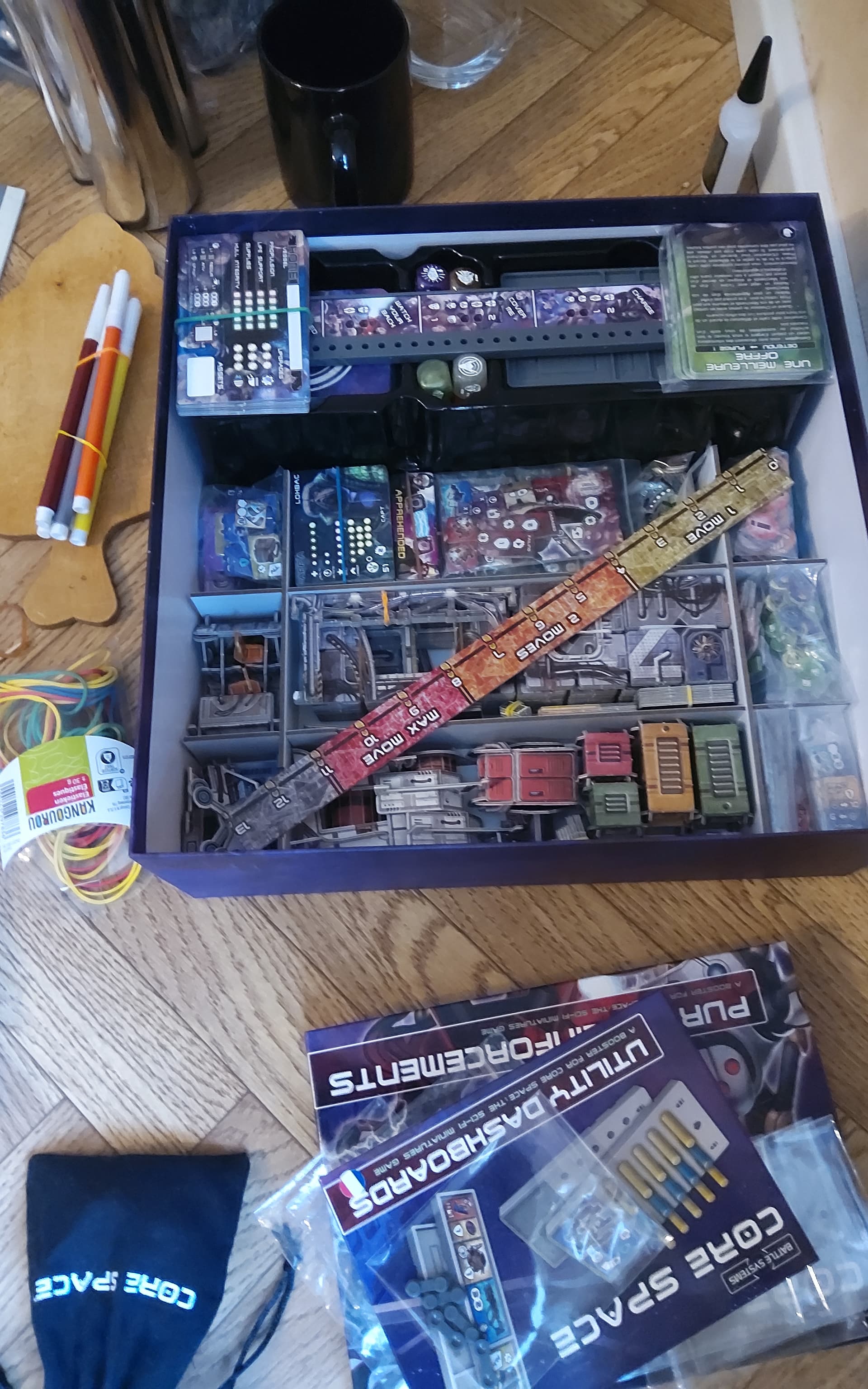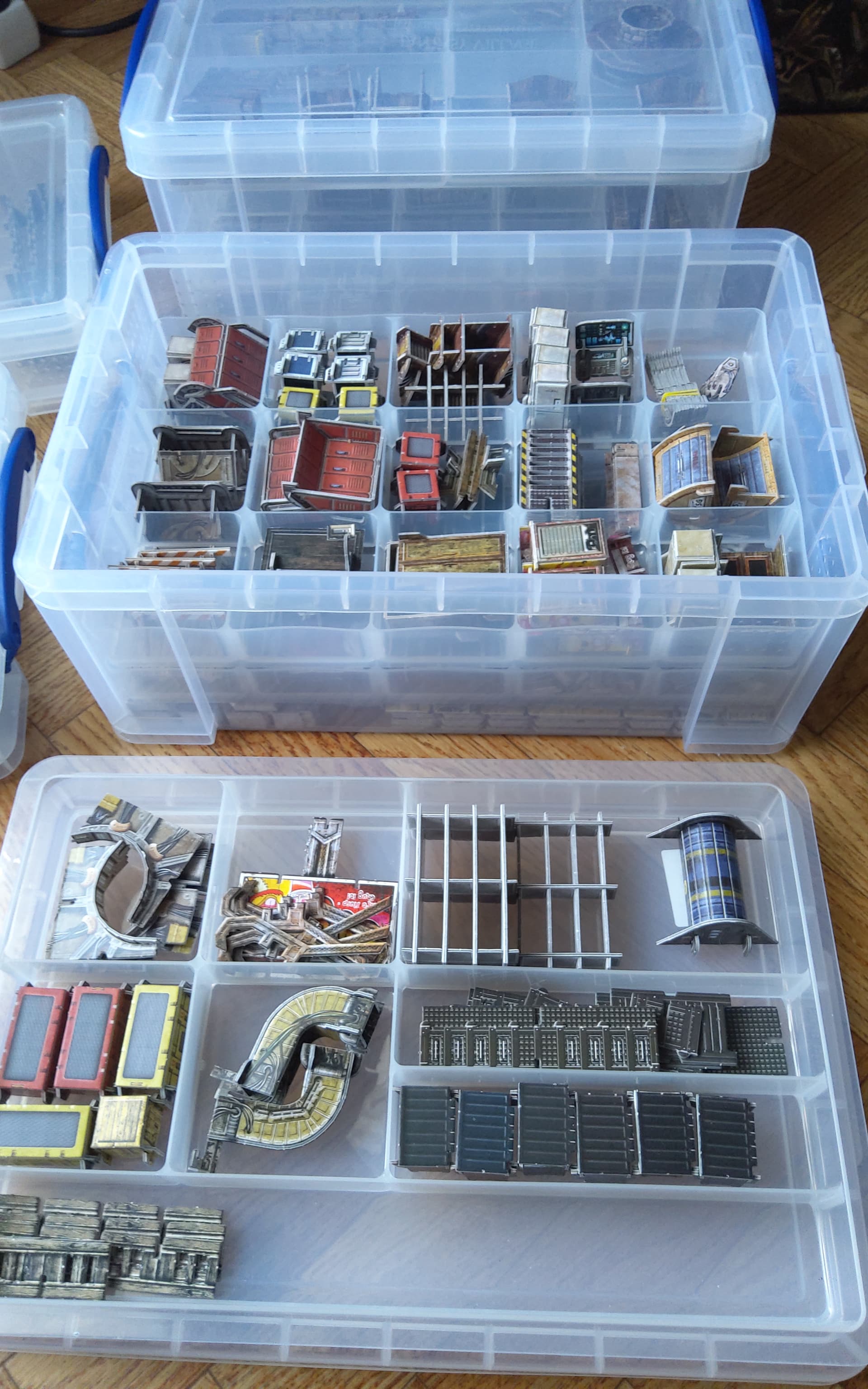 Pareil que @Telgar_Sandseeker, c’est déjà comme ça avec Core Space, First Born et les autres terrains. Tu peux regrouper les murs ensemble (je les maintiens avec des élastiques), et tous les petits objets rentrent dans les boites. Pour les terrains, c’est un peu plus chiant donc j’utilise des boites de rangements avec compartiments. Je mettrais des photos si vous voulez. J’utilise la même marque que Battle Systems : Really Useful Boxes.