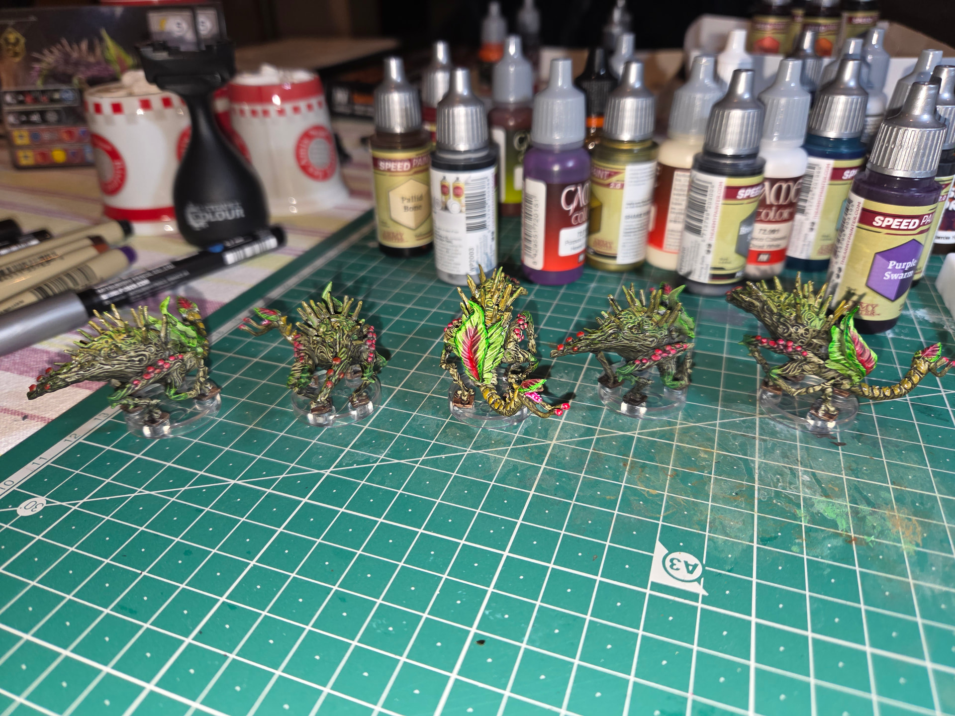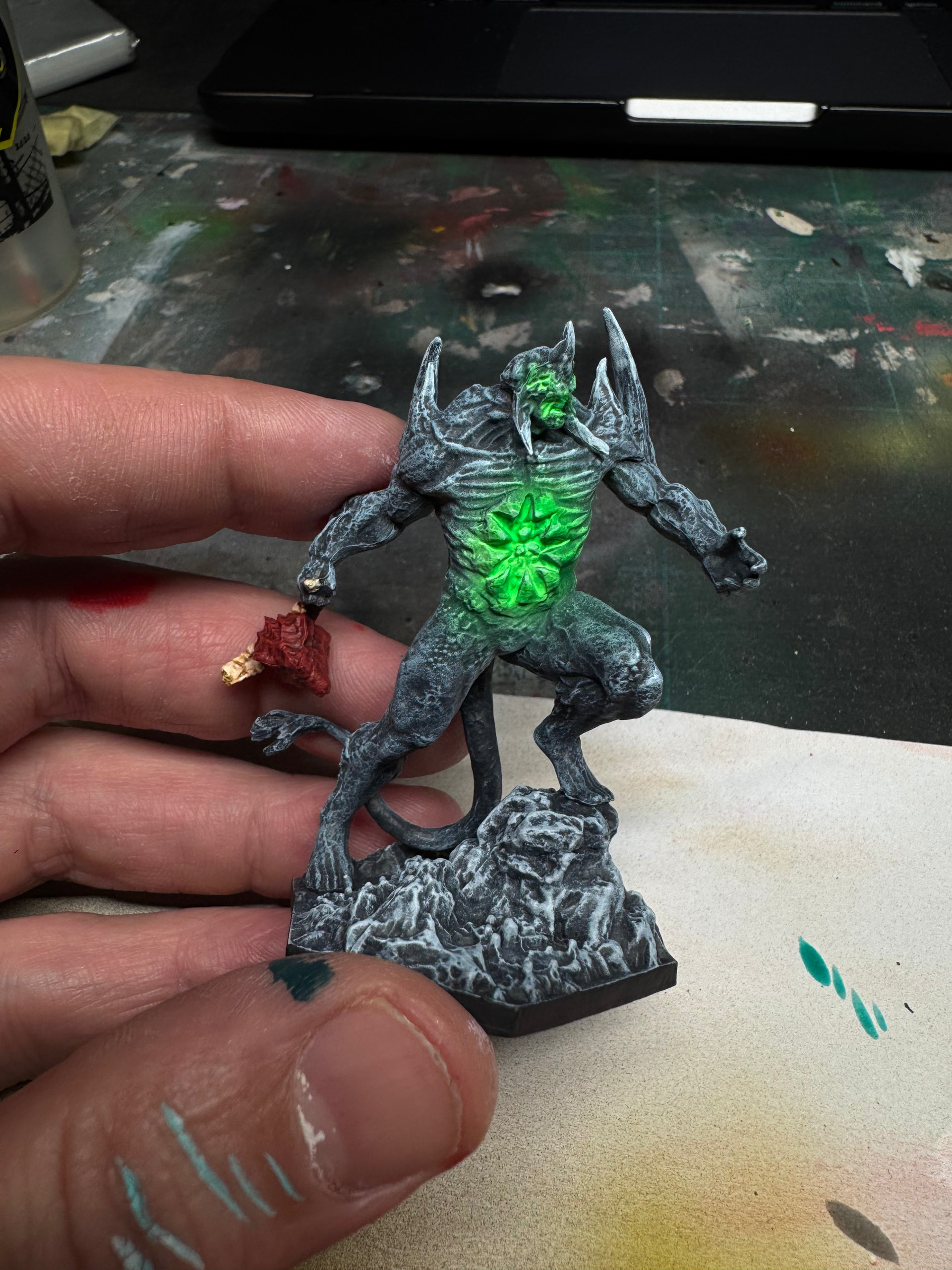 Puis un pschit vert olive sur l’extérieur un pschit d’encre blànche et un autre d’encre vert fluo de Green stuff wor’ld