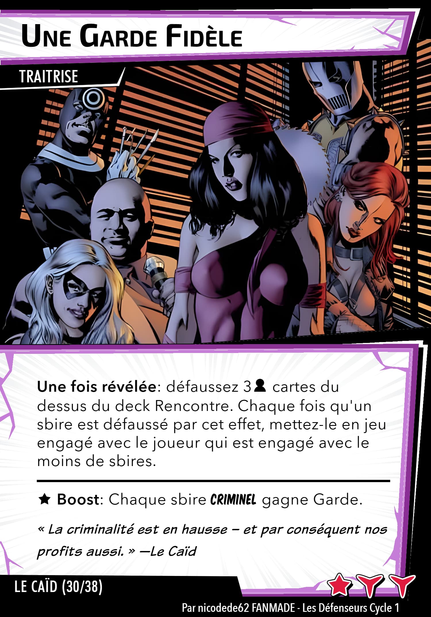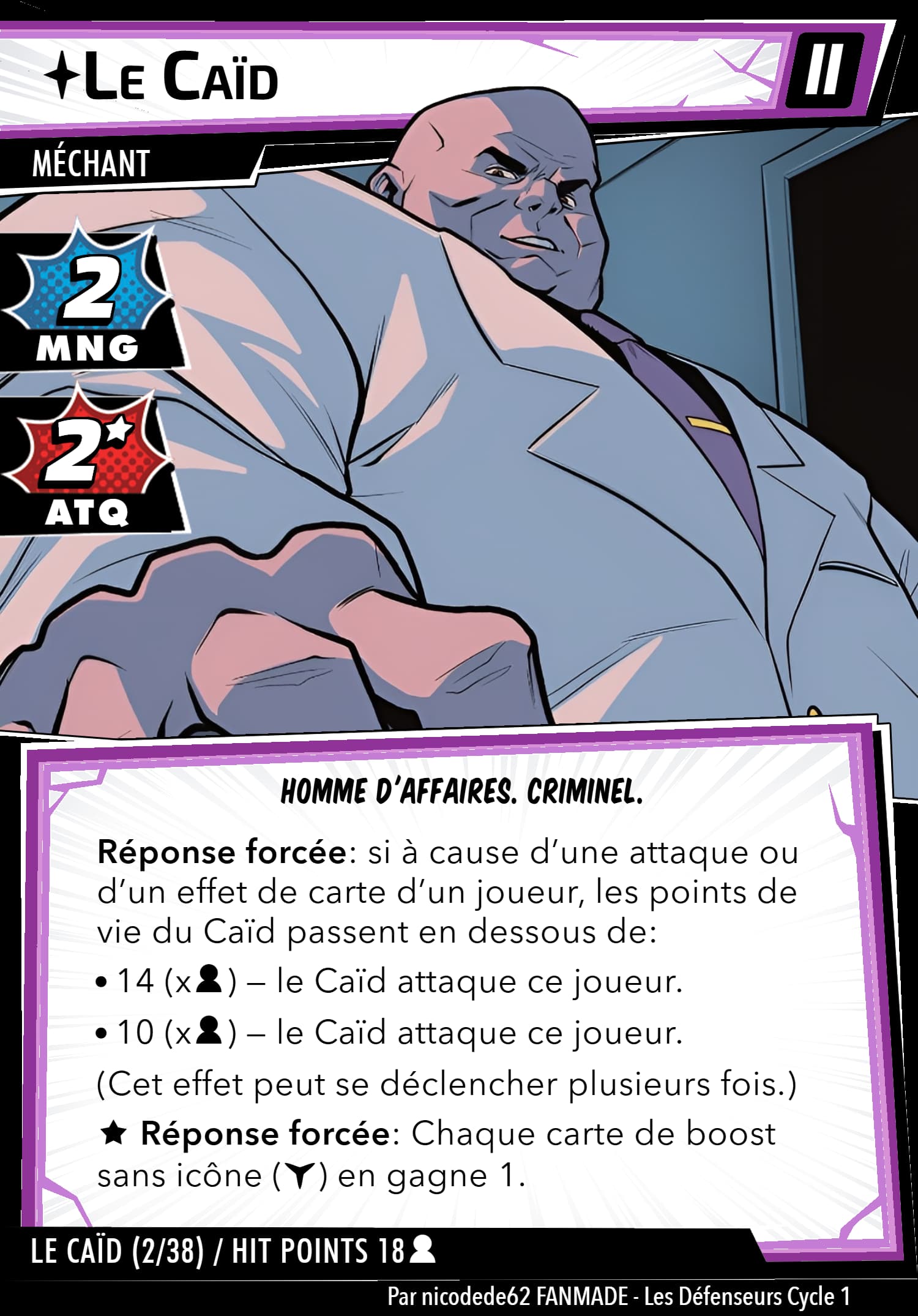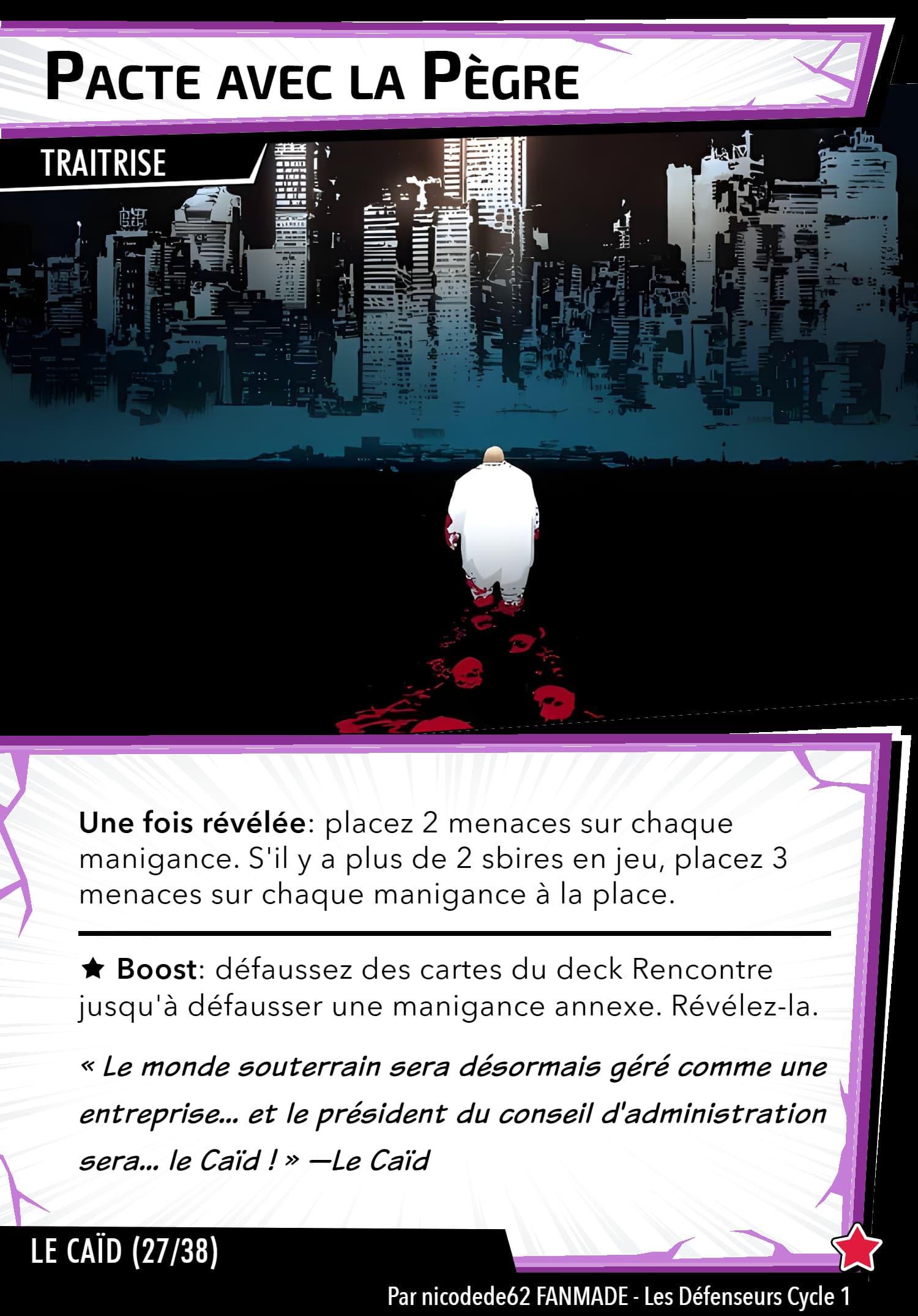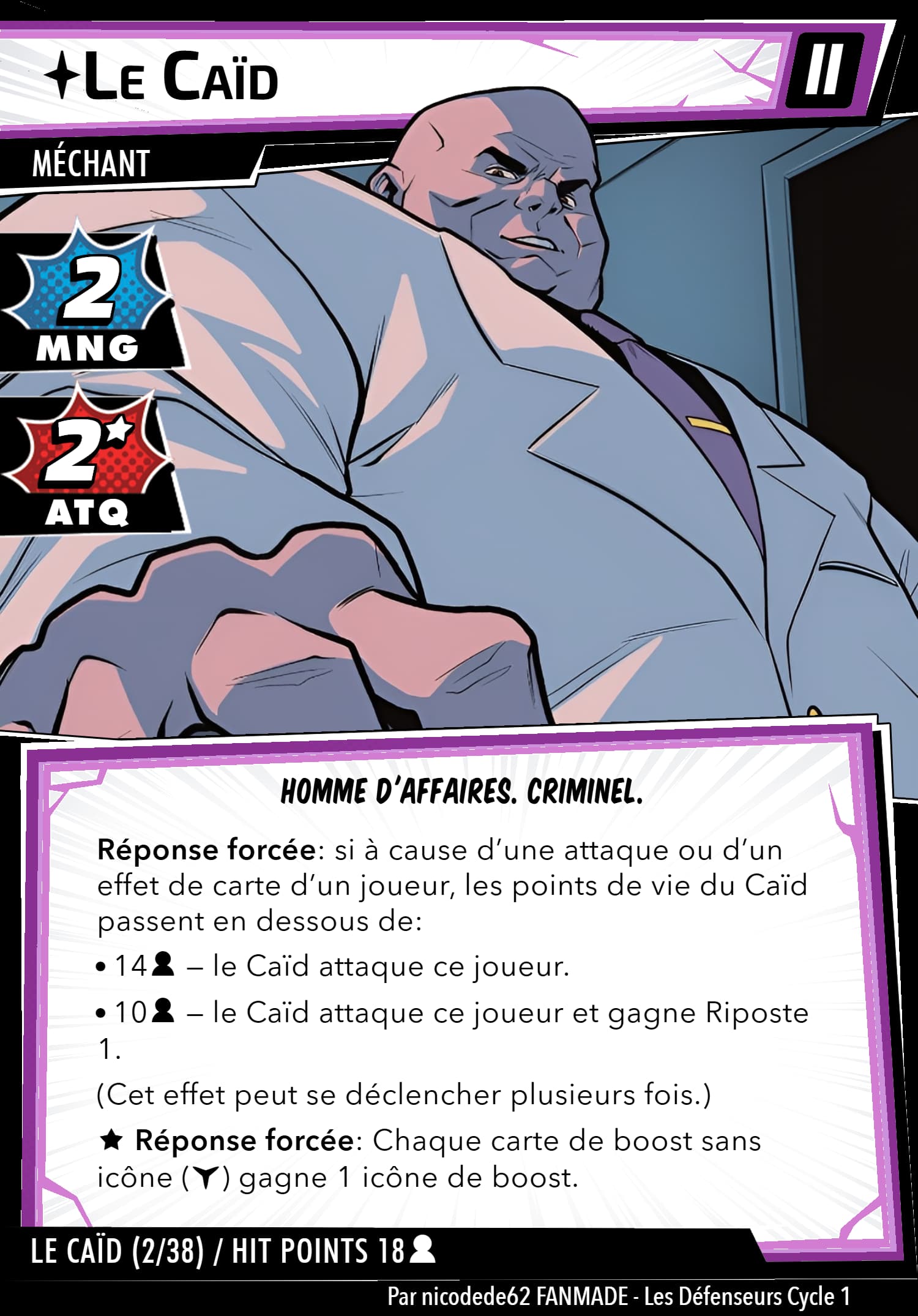 Réponse forcée: Après avoir dévoilé une carte boost sans icône boost (icône boost) quand Le Caïd vous attaque, cette carte gagne 2 [icône boost]