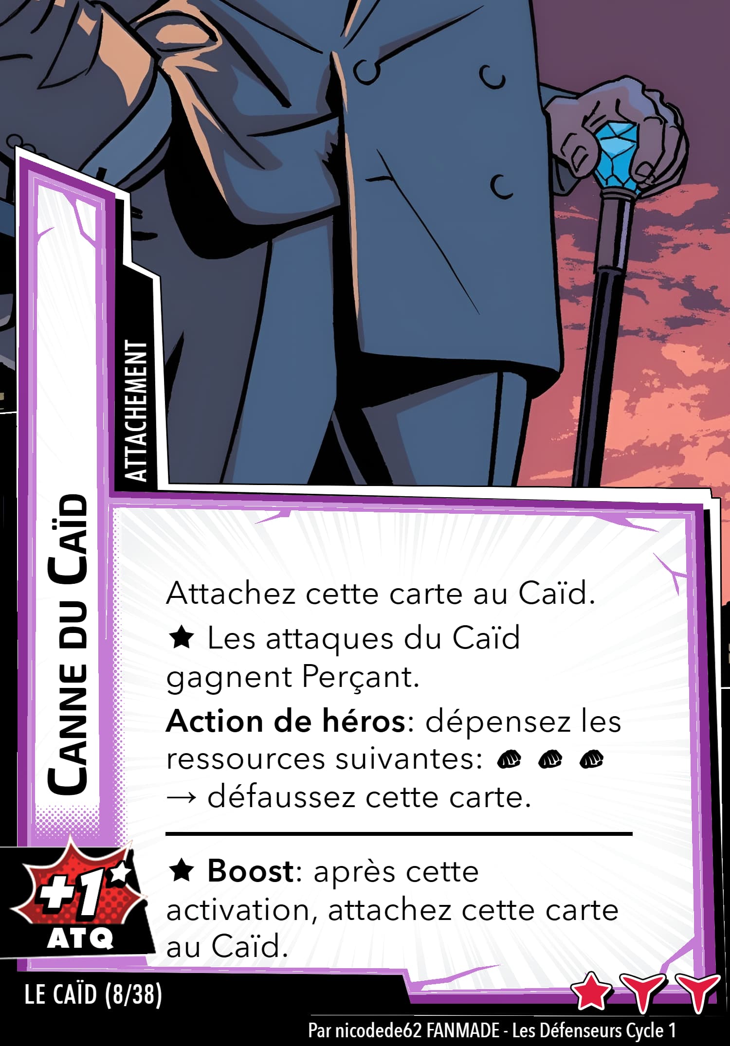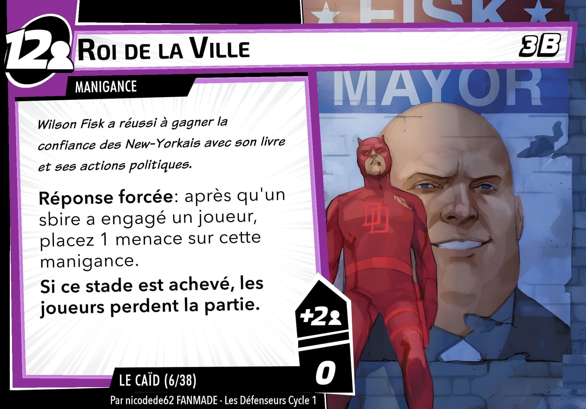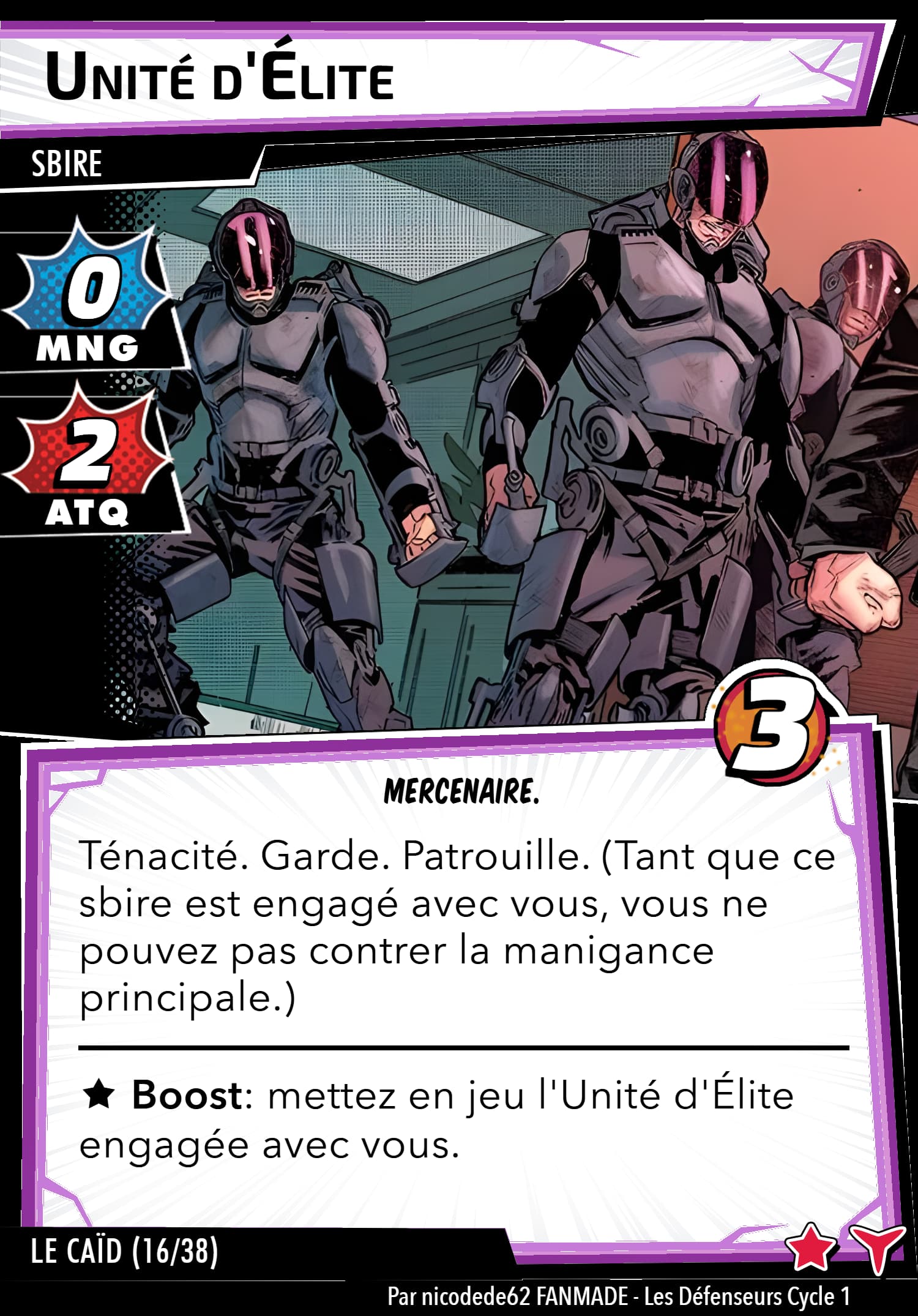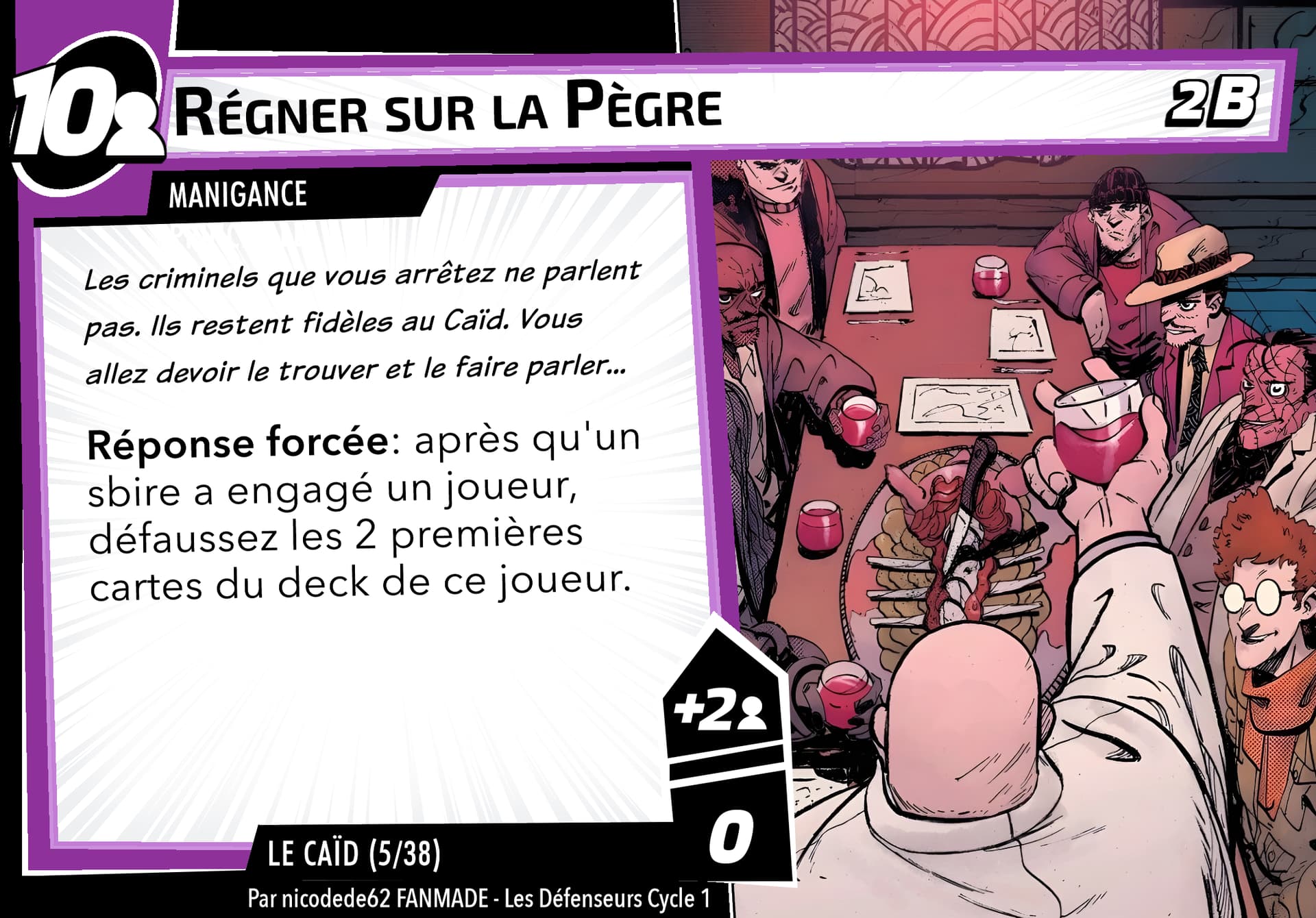 Réponse forcée: Après avoir dévoilé une carte boost sans icône boost (icône boost) quand Le Caïd vous attaque, cette carte gagne 2 [icône boost]