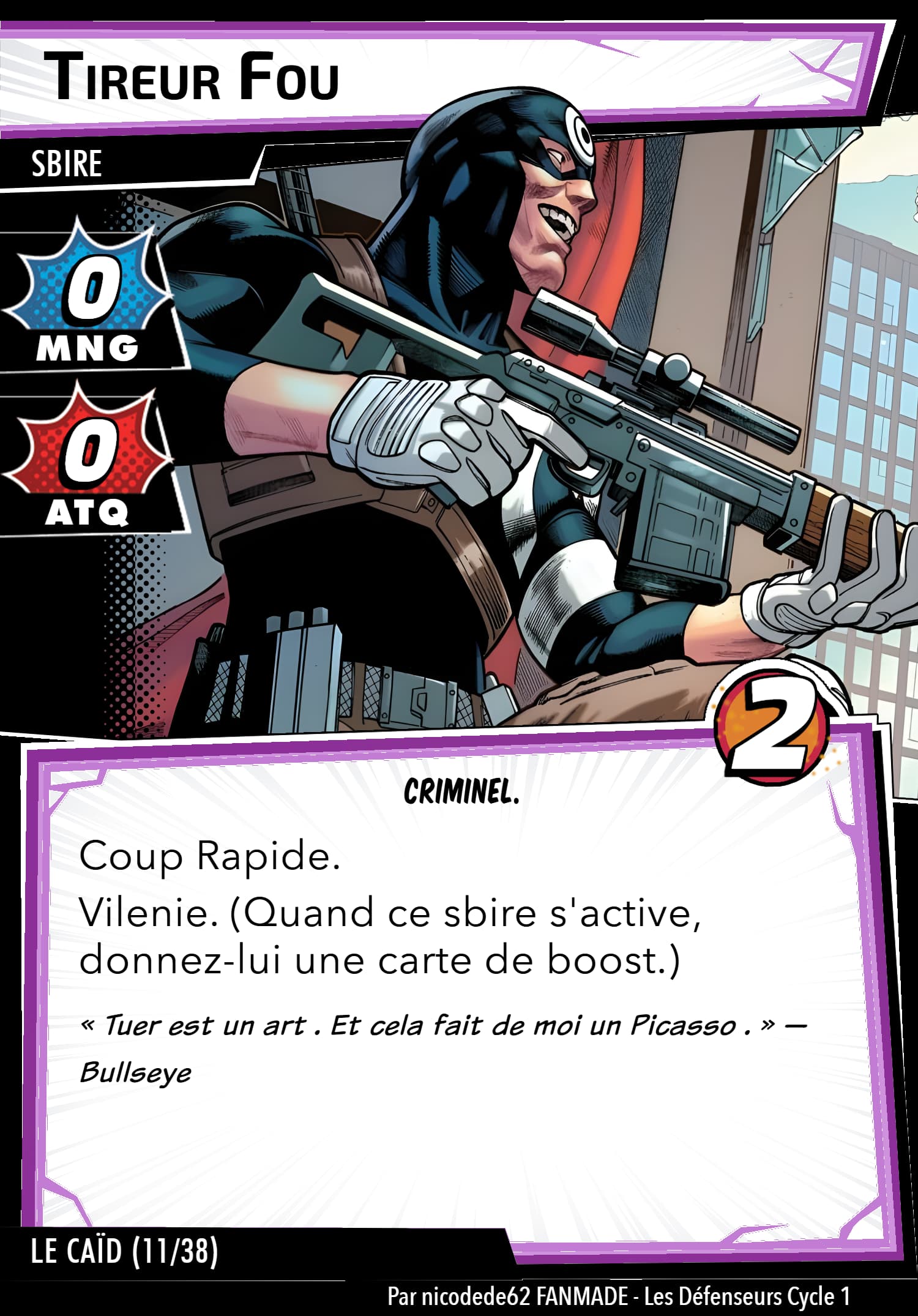 J’avoue, ces cartes ne sont pas présentes dans le deck d’origine, je me suis dit: « ça manque de vilains » et me v’la parti pour associer 2 vilaines à la place de vulgaires milices.