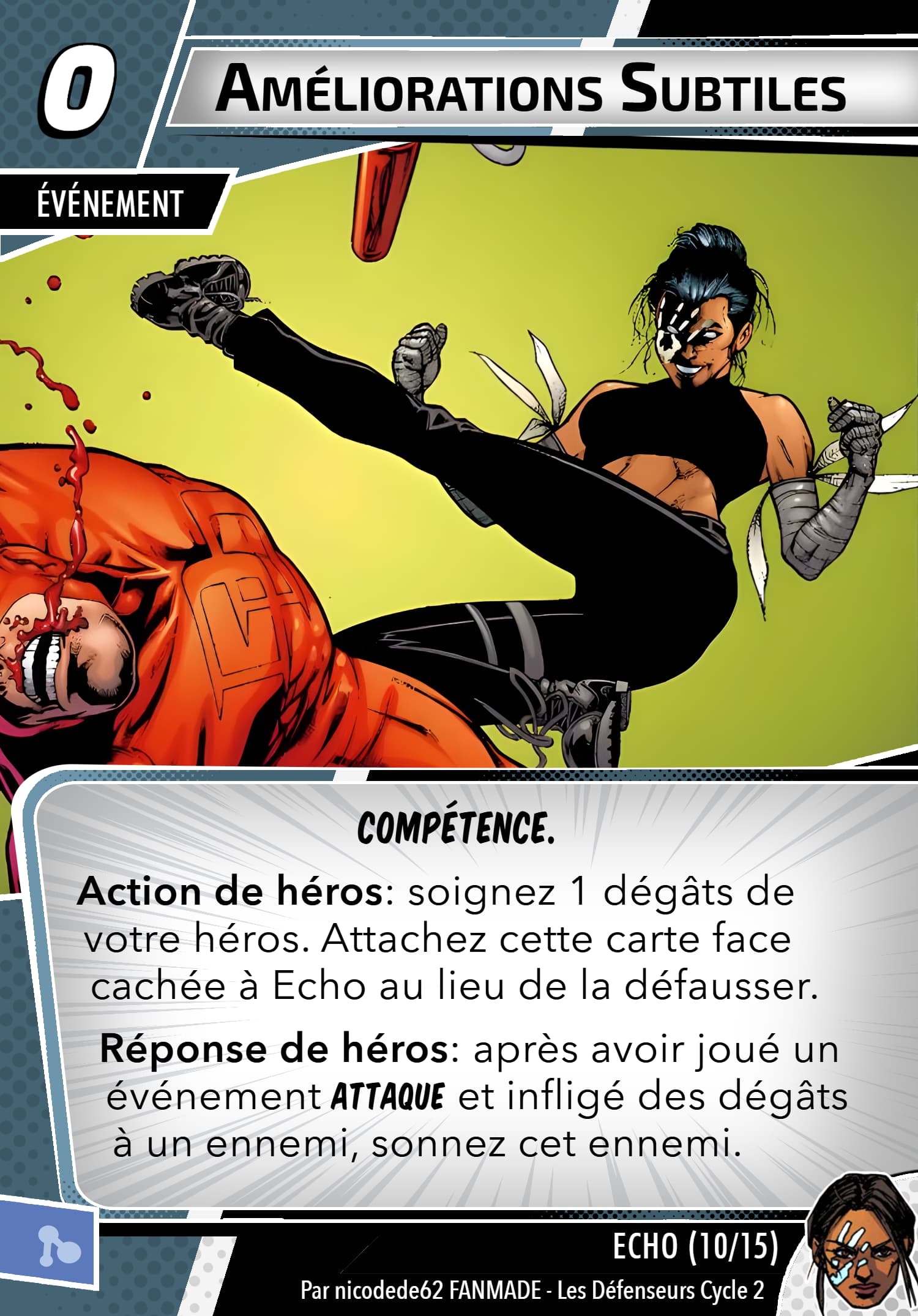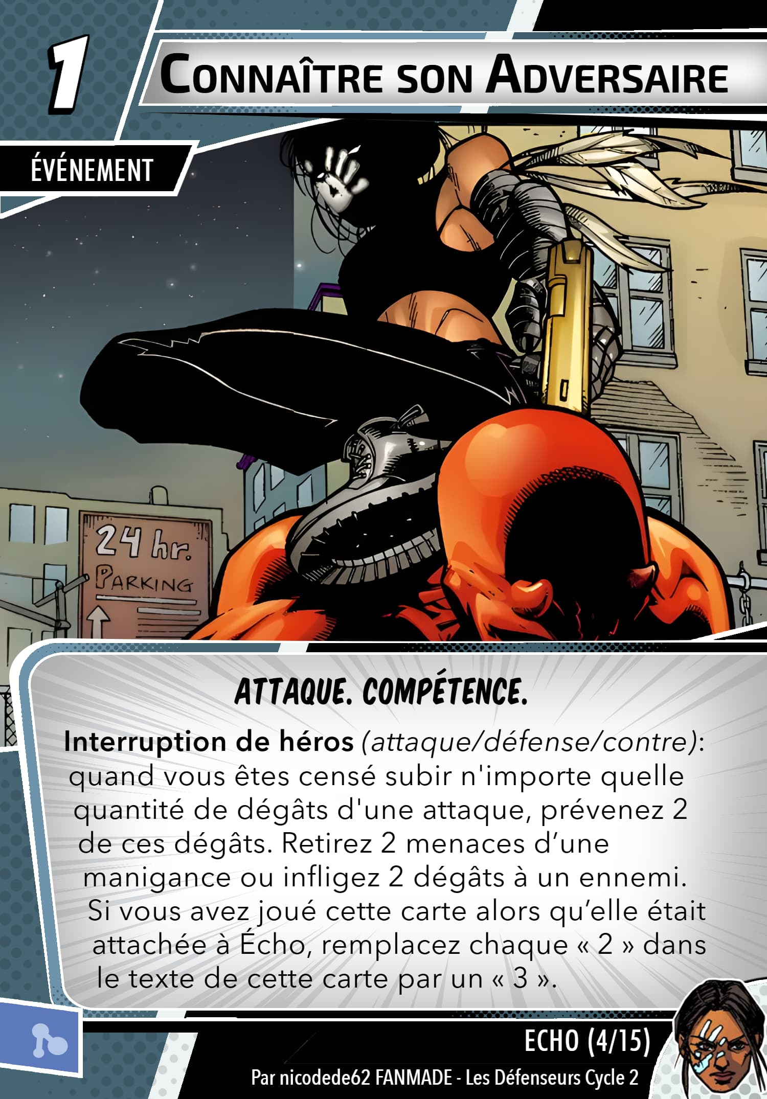 Un peu comme l’effet « teleport » de marvel legendary, vous pourrez mettre des cartes évènements avec la capacité « interruption » et « réponse » (doit y’avoir quoi faire avec le nombre de cartes existantes) à coté d’echo face cachée. Ces cartes ne feront pas parti de votre main mais seront comme des cartes apprises et jouables comme si elles étaient dans votre main.