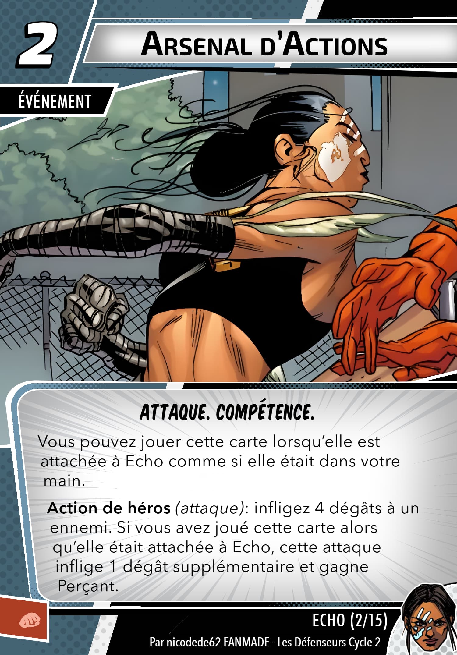 Pour les attaques, l’idée d’attaquer tout les persos pourrait éviter de rajouter du texte, j’ai trouvé hier une carte où le wording était similaire, je vais voir pour l’exploiter et voir si la carte n’est pas trop chargée.