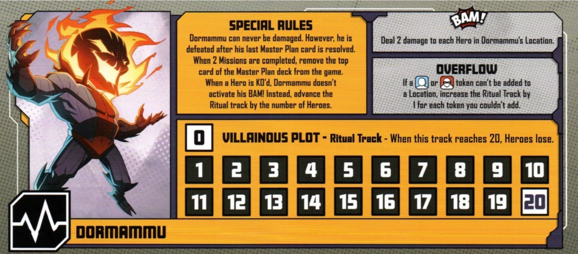 En cas de héros KO, on n’active PAS le BAM, à la place on ajoute un doombot dans le lieu du héros KO.