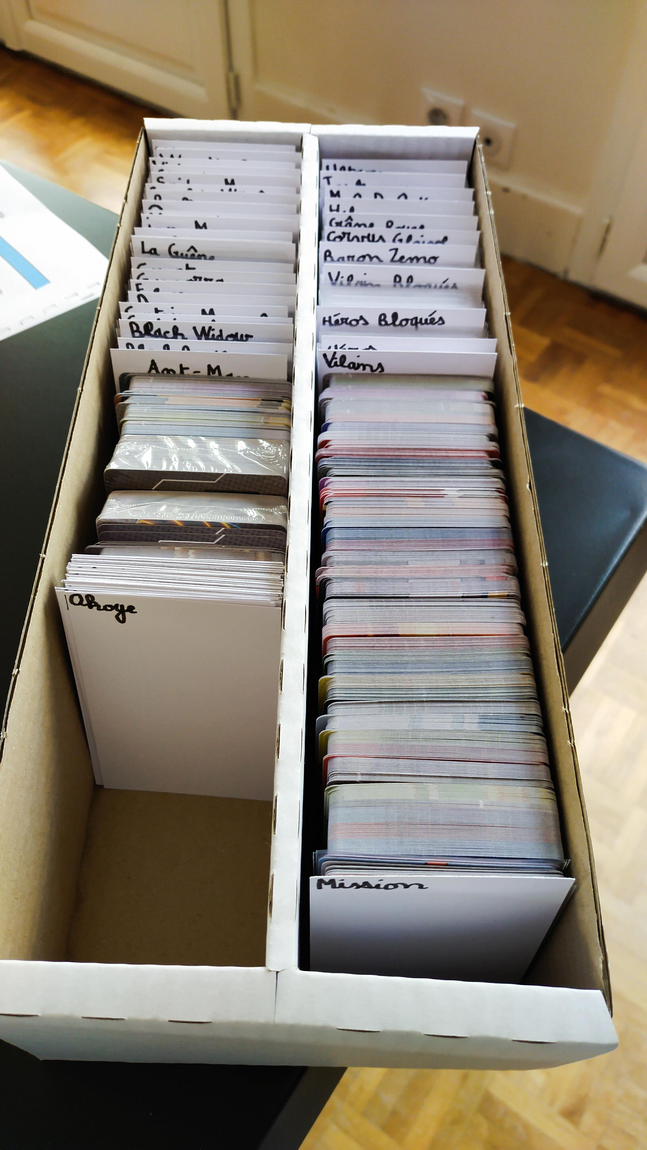 Tout n’est pas encore sleevé, on a pas « débloqué » encore tous les persos, et les intercalaires sont homemade : Mon fils a absolument voulu les faire lui !