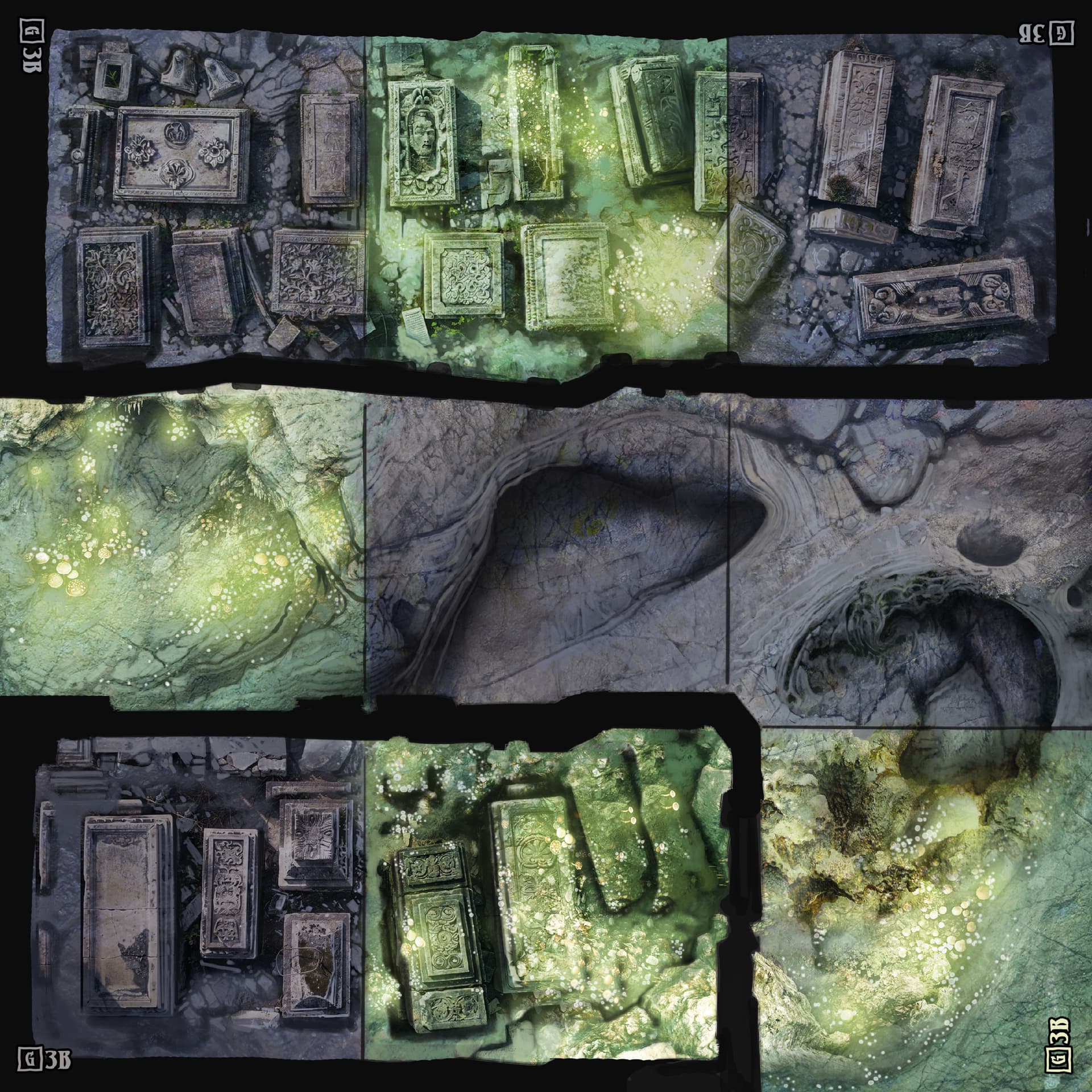 Exemple, au niveau du sarcophage (en haut à droite), le sarcophage est littéralement coupé en deux entre la zone verte et la zone sombre.