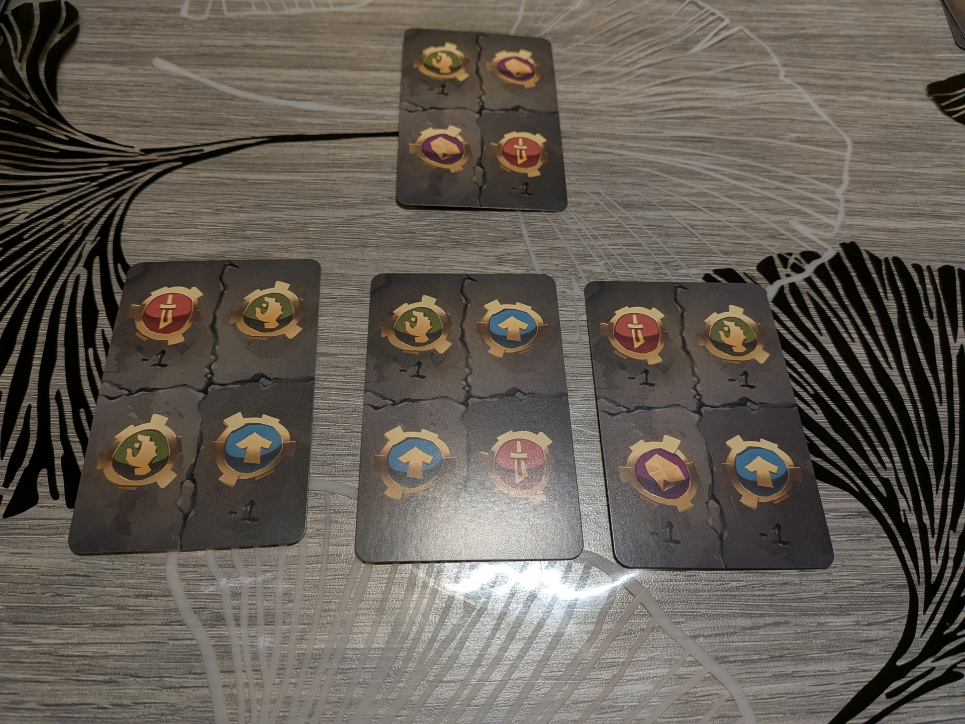 Nous débutons le jeu avec quatre cartes comme celles-ci :