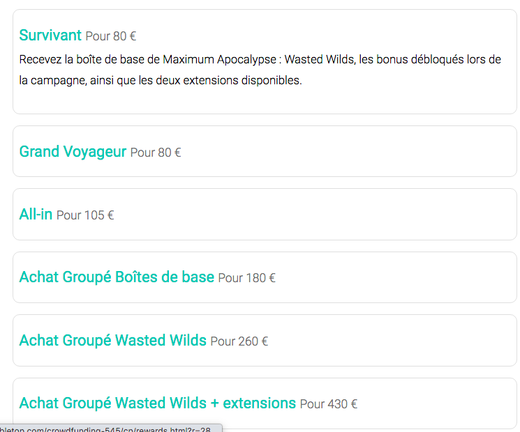 Et dans les descriptions, ça serait peut être mieux d’indiquer qu’il y aura les bonus débloqués dans tous les pledges qui contiennent Wasted Wilds (ca manque pour Grand voyageur et All-in)