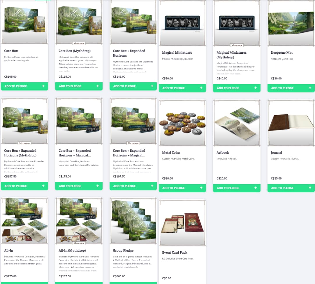 665 (pledge) + 90CA$ (pledge), ça fait environ 528€ pour 4 jeux (jeu + extension + card deck + minis), soit quasiment le même prix qu’en décembre 2021