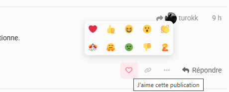 Par contre, le truc que je n’aime pas, c’est d’avoir le total général, et pas le total par réaction. Je ne comprends pas l’idée d’additionner les pouces vers le haut et les pouces vers le bas par exemple. Alors certes on peut avoir le détails facilement en cliquant sur le chiffres, mais bon je préfère avoir les sous totaux en un seul coup d’oeil comme sur discord plutôt qu’un chiffre qui n’a pas de sens.