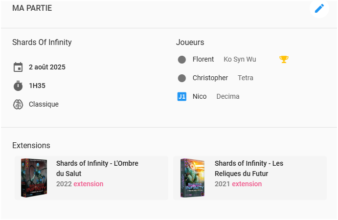 Mais précisément : j’ai l’impression que cette recherche rapide met en évidence le comportement qui me semble illogique. Puisque lorsqu’on se rend sur la fiche d’une extension, l’onglet « Parties » ne mentionne aucune partie, ce type de recherche ne me remonte aucun résultat (ou alors si je mets « nombre joué = 0 »), toutes les extensions apparaissent.