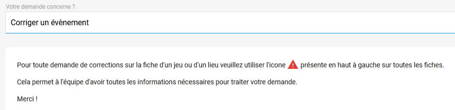 Alors je l’ai prérempli, mais il se trouve que l’évènement existe déjà, et qu’il y a de gros warning pour ne pas créer de doublon.