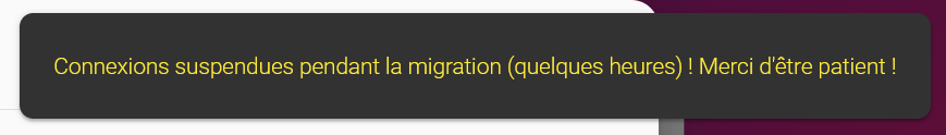 Comme indiqué depuis des semaines sur une popup à l’ouverture du site (entre autre) une migration était prévu aujourd’hui à partir de 12h (connexion coupé au site à 11h30). C’était donc tout à fait normal, le temps que la migration se fasse (dans la douleur malheureusement c’est jamais simple).